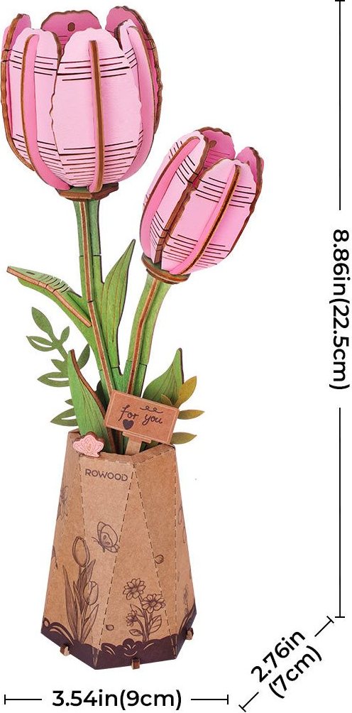 ROBOTIME Rowood 3D drevené puzzle Ružové tulipány 72 dielikov