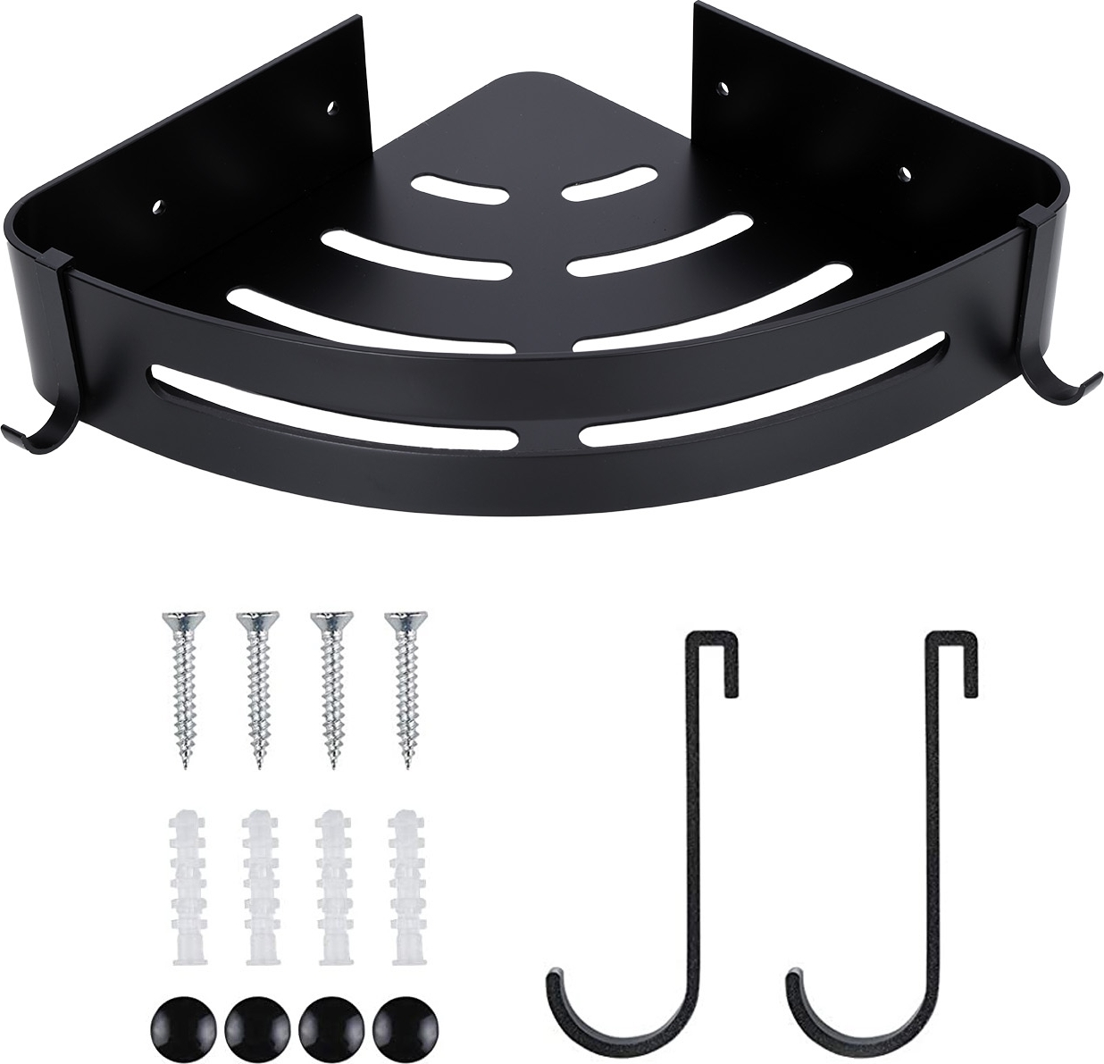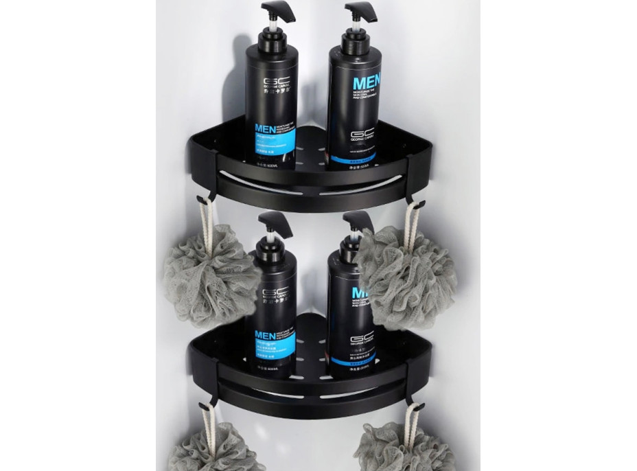 Kúpeľňová polička je vyrobená z najkvalitnejšieho hliníka. Má zaoblené hrany a je prevedená v tmavo matnej čiernej farbe. Ďalšie háčiky uľahčujú zavesenie žiniek alebo hubiek. Polička je odolná proti korózii.