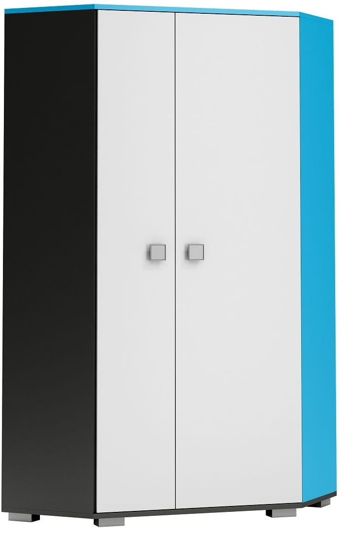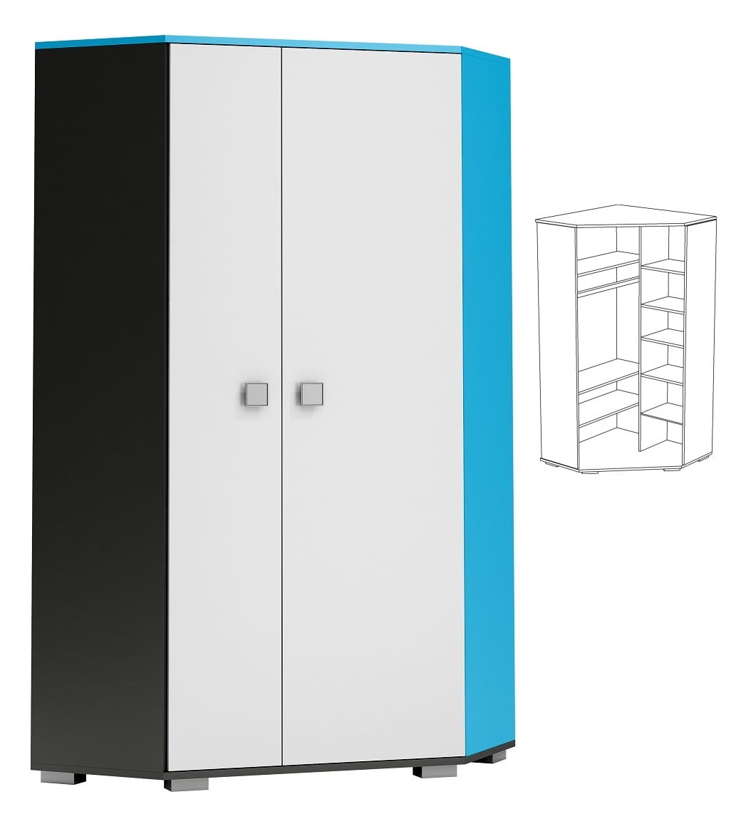Rohová šatníková skriňa s policami a tyčou na ramienka - BLUE - vysoký lesk