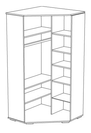 Skriňa je rozdelená na pravú časť s 5 policami, ktoré priestor rozdeľujú na 6 komôr a na ľavú časť s hornou policou, priestorom na šatníkovú tyč pod ňou a na spodnej 2 police. To napomôže ľahko udržiavať poriadok a organizovať si veci v skrini.