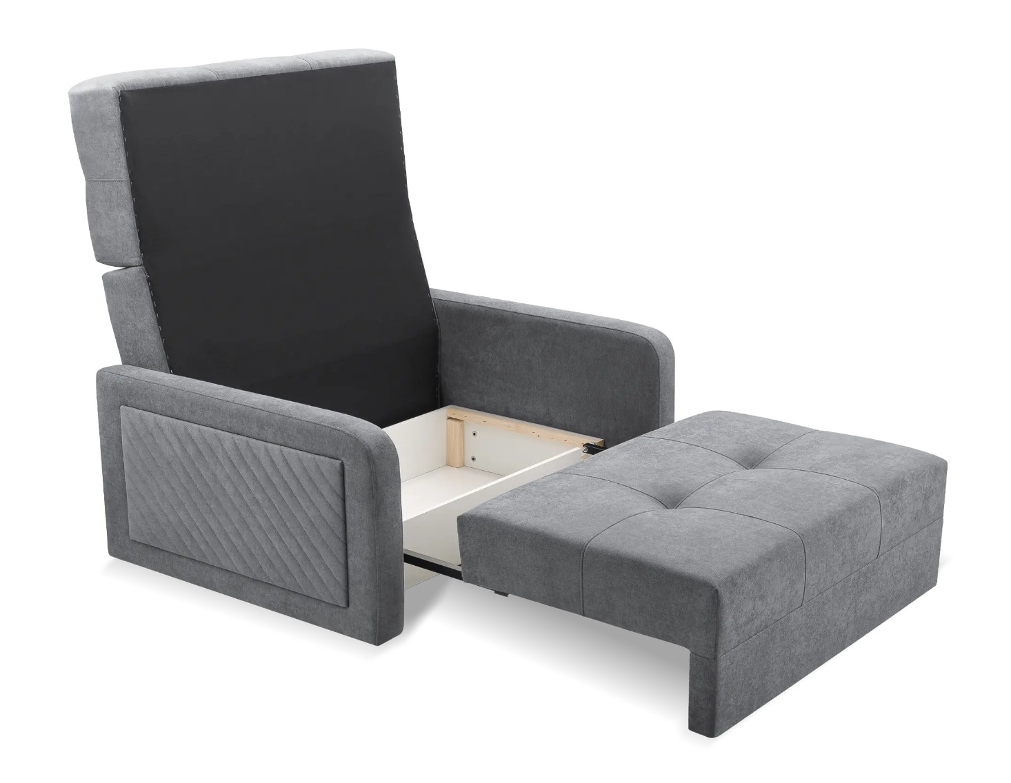 Pohodlná pohovka je dokonalým doplnkom pre obývaciu izbu alebo detskú izbu. Je rozkladacia a ponúka veľký úložný priestor na lôžkoviny. Konštrukcia je vyrobená z masívu a kvalitnej laminovanej dosky, ktorá je odolná proti poškriabaniu, vysokej teplote a vlhkosti. Pružinová tlmiaca konštrukcia s kvalitnou T30 PUR penou sa zaistí o ideálny komfort pre sedenie aj spanie.