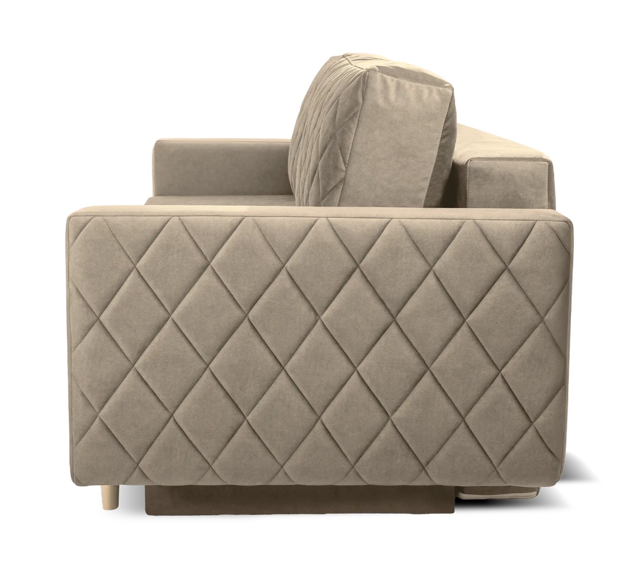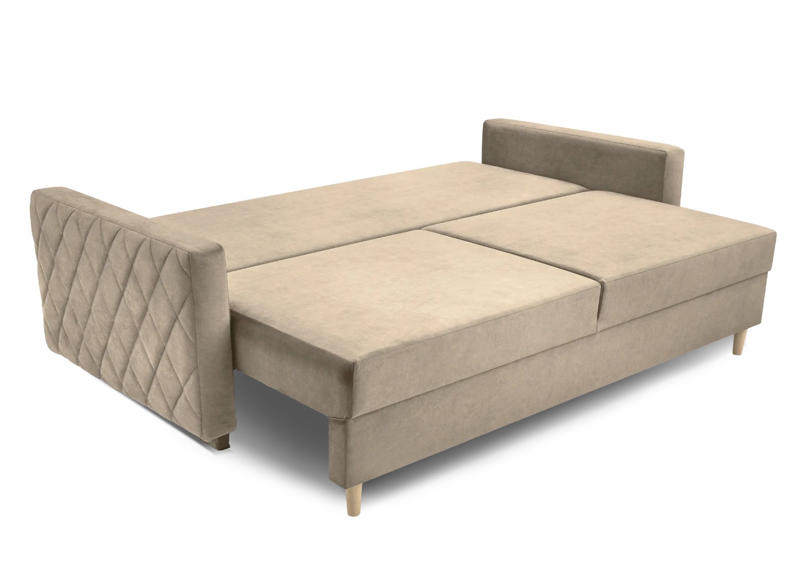 Pohovka kolekcie Leonardo nie je pohodlná, ale vďaka svojmu dizajnu aj skvelým estetickým doplnkom pre obývaciu izbu. Je ľahko rozkladacia a ponúka veľký úložný priestor na lôžkoviny. Konštrukcia je vyrobená z masívu a kvalitnej laminovanej dosky, ktorá je odolná proti poškriabaniu, vysokej teplote a vlhkosti. Pružinová tlmiaca konštrukcia s kvalitnou T30 PUR penou sa zaistí o ideálny komfort pre sedenie aj spanie.