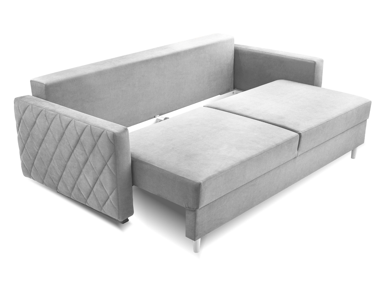 Pohovka kolekcie Leonardo nie je pohodlná, ale vďaka svojmu dizajnu aj skvelým estetickým doplnkom pre obývaciu izbu. Je ľahko rozkladacia a ponúka veľký úložný priestor na lôžkoviny. Konštrukcia je vyrobená z masívu a kvalitnej laminovanej dosky, ktorá je odolná proti poškriabaniu, vysokej teplote a vlhkosti. Pružinová tlmiaca konštrukcia s kvalitnou T30 PUR penou sa zaistí o ideálny komfort pre sedenie aj spanie.