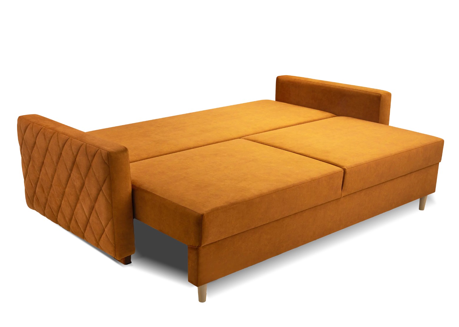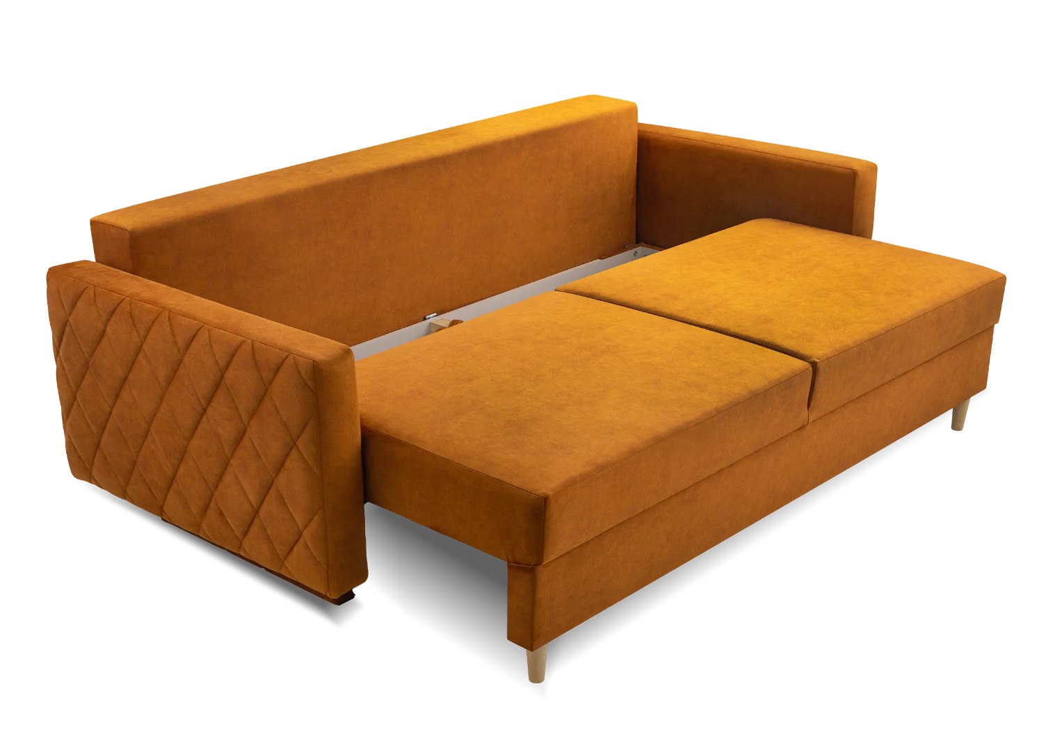 Pohovka kolekcie Leonardo nie je pohodlná, ale vďaka svojmu dizajnu aj skvelým estetickým doplnkom pre obývaciu izbu. Je ľahko rozkladacia a ponúka veľký úložný priestor na lôžkoviny. Konštrukcia je vyrobená z masívu a kvalitnej laminovanej dosky, ktorá je odolná proti poškriabaniu, vysokej teplote a vlhkosti. Pružinová tlmiaca konštrukcia s kvalitnou T30 PUR penou sa zaistí o ideálny komfort pre sedenie aj spanie.