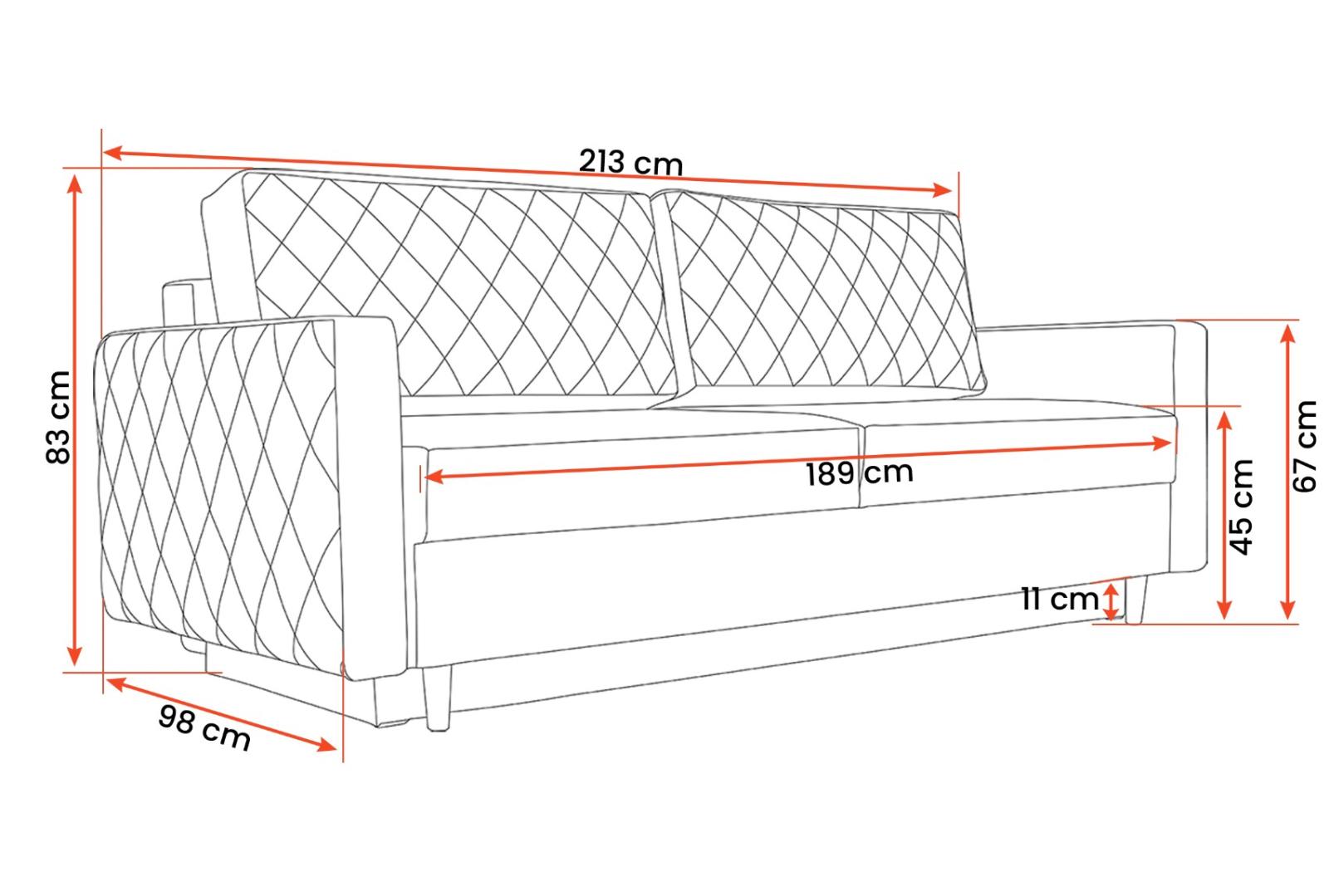 - šírka: 215 cm, výška: 100 cm, hĺbka: 94 cm