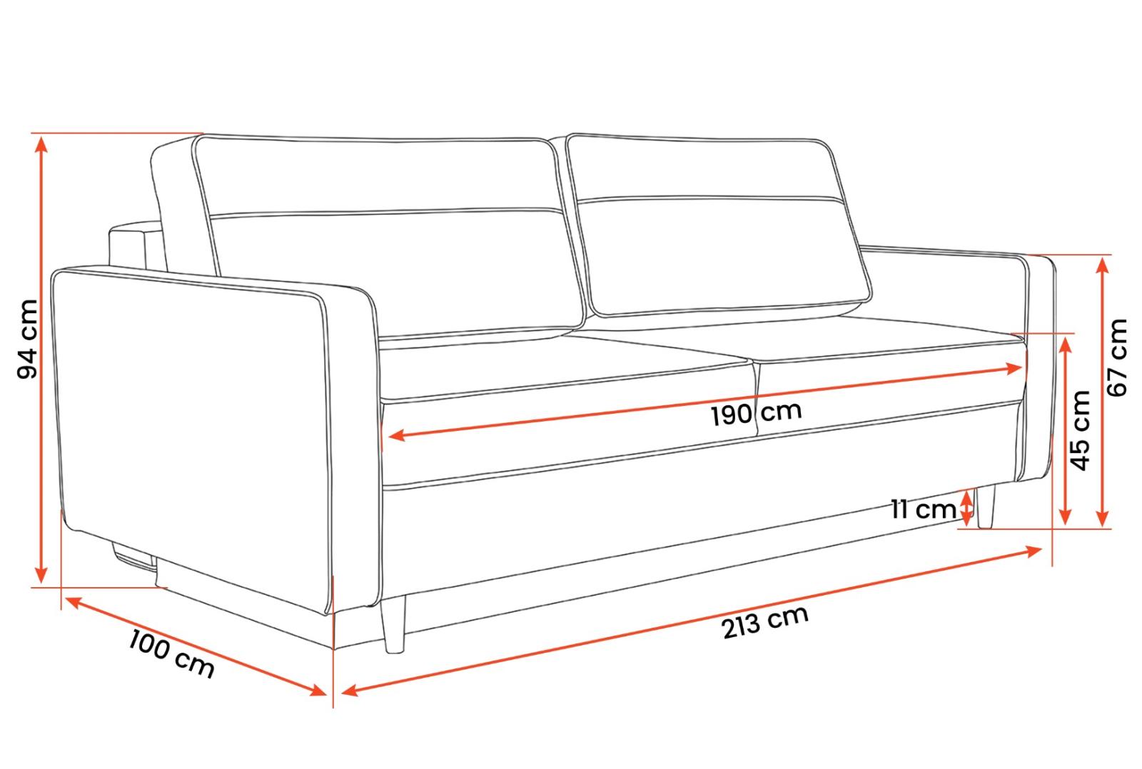 - šírka: 213 cm, výška: 94 cm, hĺbka: 100 cm