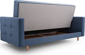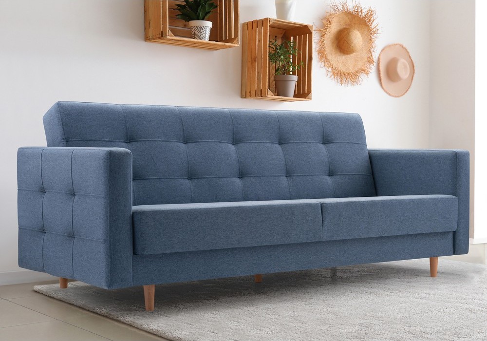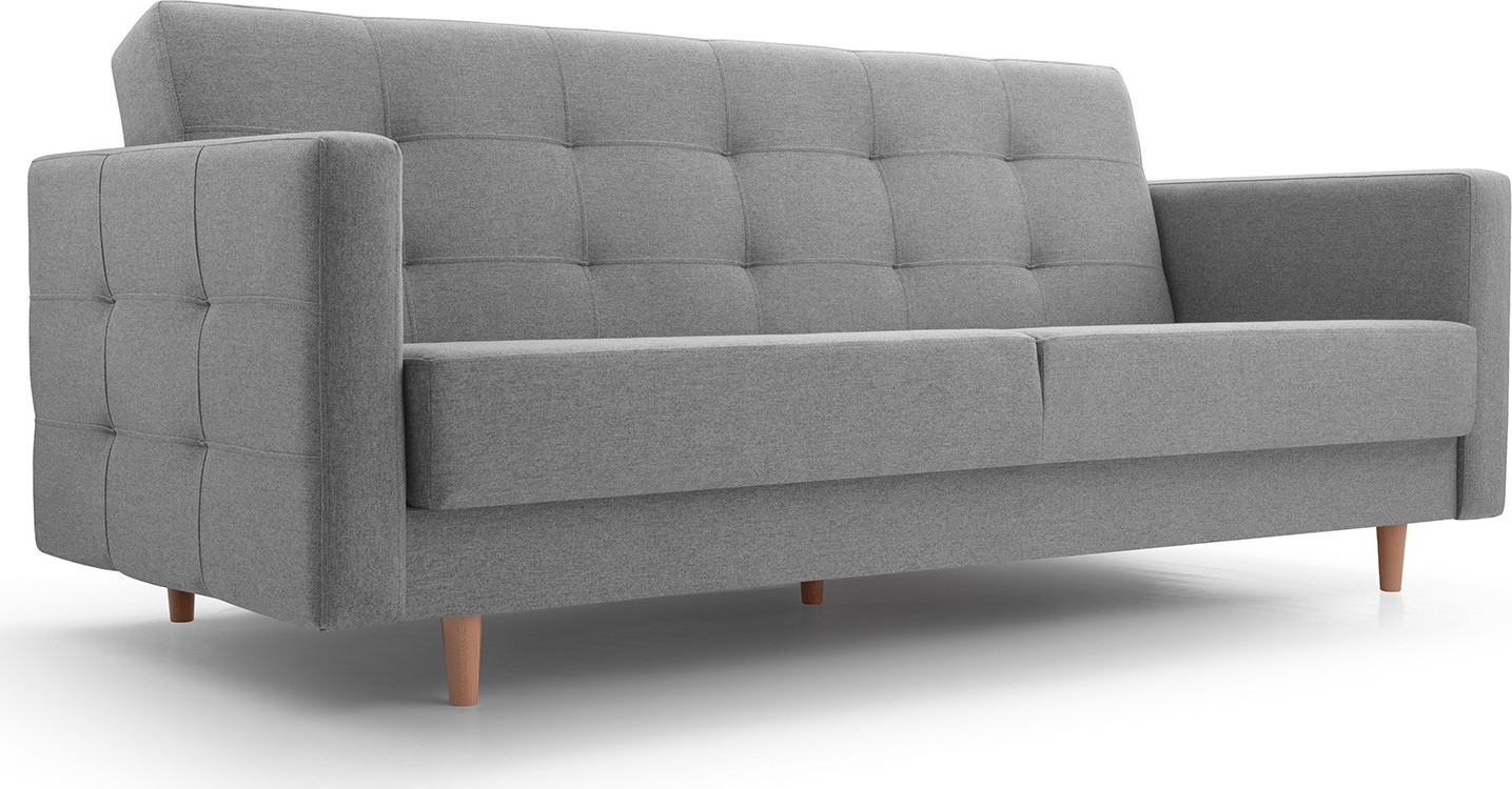 Rozkladacia pohovka TERST škandinávskeho štýlu, ktorá sa hodí do moderne zariadeného interiéru. Charakteristickým znakom pohovky sú drevené nohy a prešívanie na operadle a bokoch. Všetko je doplnené svetlými drevenými nôžkami. Pohovka má spaciu plochu 119x180 cm a úložný priestor na lôžkoviny.