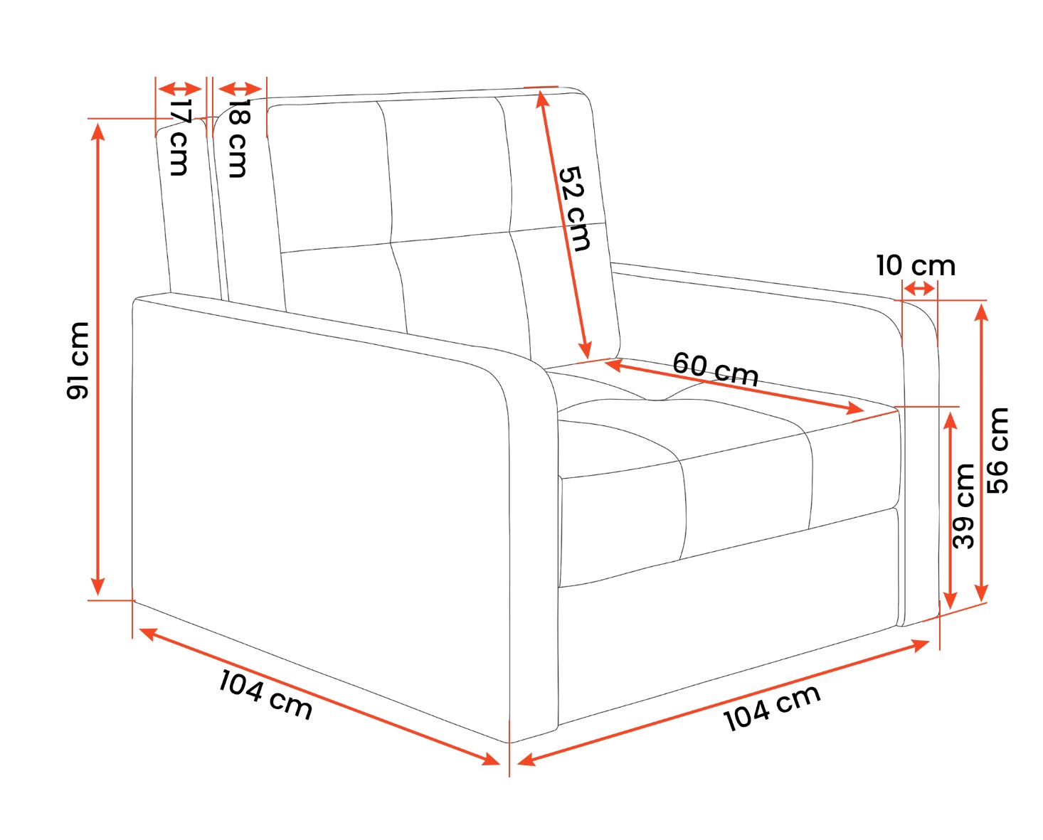 - šírka: 104 cm, výška: 92 cm, hĺbka: 104 cm