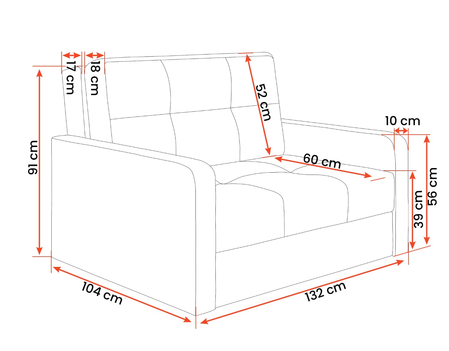 - šírka: 132 cm, výška: 92 cm, hĺbka: 104 cm