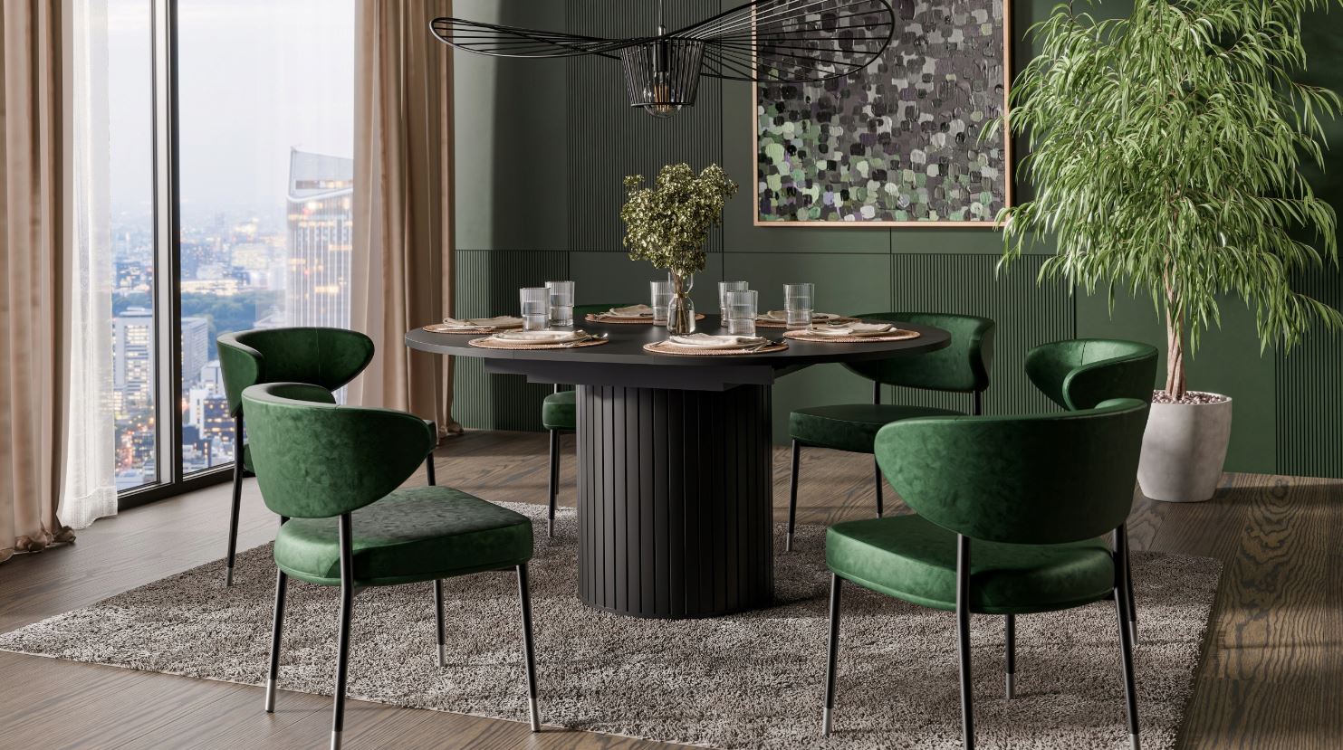 Rozkladací okrúhly jedálenský stôl z kolekcie ZANTE sa skvele hodí do jedální alebo obývacích izieb zariadených v modernom, klasickom aj glamour štýle. Produkty z kolekcie ZANTE ponúkame v dvoch variantoch farebného prevedenia, a to v klasickej čiernej matnej farbe alebo v módnej kašmírovej farbe. Kolekcia ZANTE je veľmi moderná, kombinuje funkčnosť a štýl. Kombinácia zaoblených tvarov so štýlovými kovovými nôžkami dodáva celej kolekcii eleganciu a jedinečnosť.