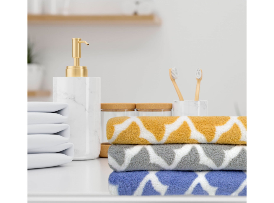 Uterák PURE DECO s mozaikovým tulipánovým vzorom je vyrobený z tkaniny, ktorá dokonale schne. Uterák je jemný a príjemný a skvele absorbuje vodu. Bude skvelým doplnkom do kúpeľne alebo kuchyne.