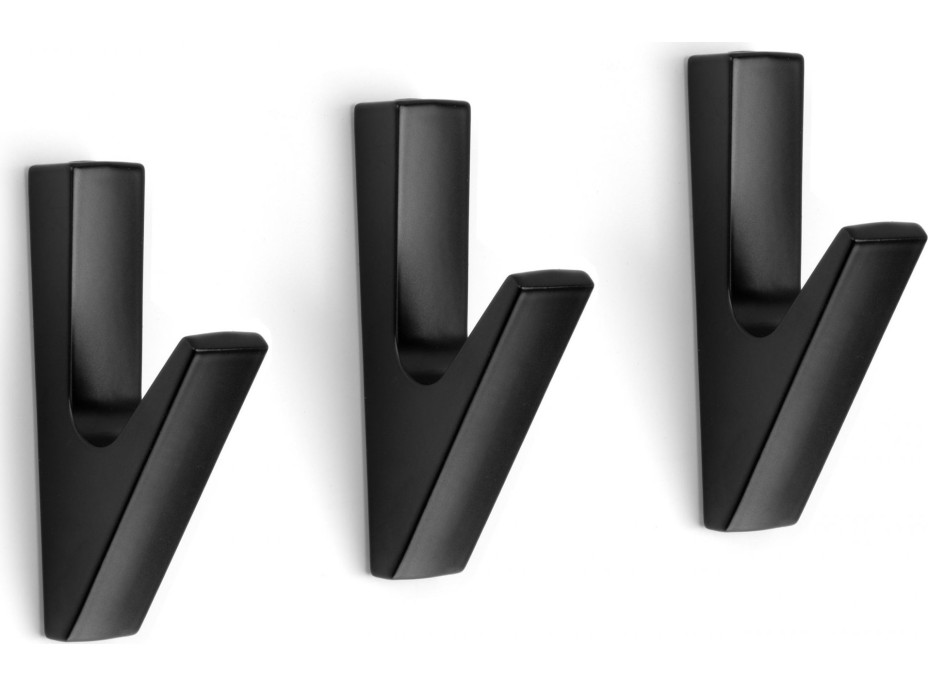 Súprava háčikov Harry je dokonalým riešením pre ľudí, ktorí oceňujú eleganciu a funkčnosť. Sada sa skladá z troch čiernych vešiakov vyrobených z práškovo lakovaného hliníka v matnej čiernej farbe. Háčiky Harry sa vďaka svojim univerzálnym farbám a štýlovému dizajnu skvele hodia do každého prostredia ako v kúpeľni, tak v predsieni. Ich moderný vzhľad z nich robí ideálny doplnok do loftových a moderných interiérov. Súprava je dodávaná vrátane montážneho materiálu.
