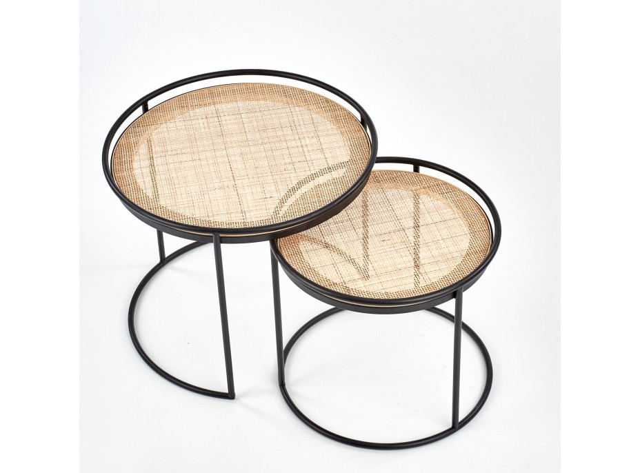 Súprava konferenčných stolíkov MANA - čierna/prírodný ratan