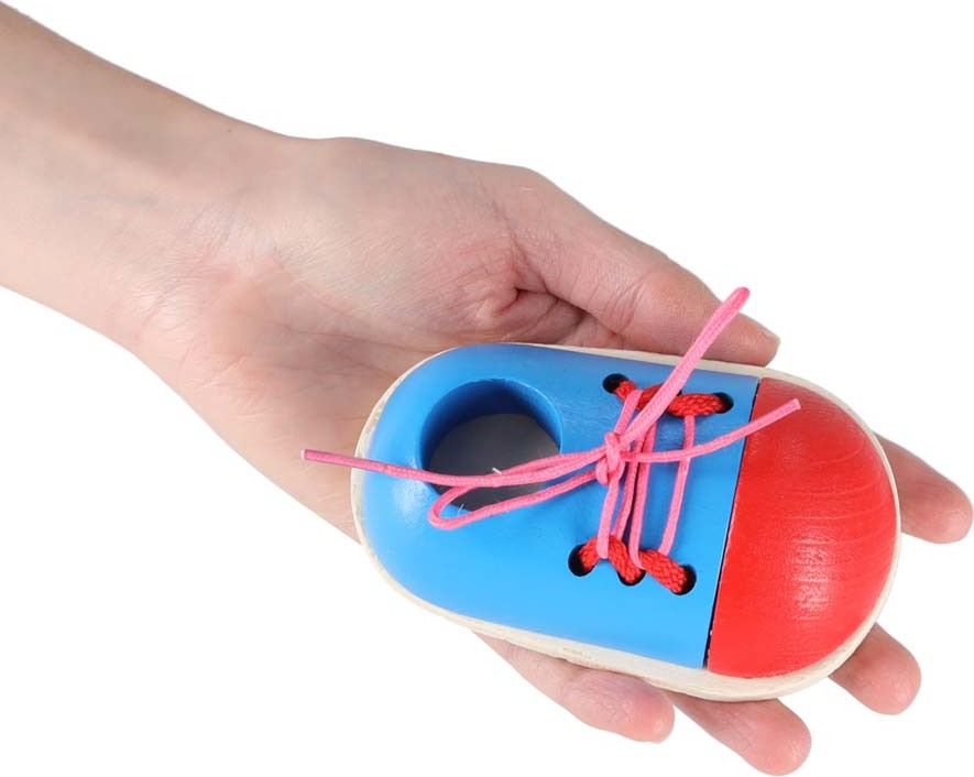 Tento pár drevených topánok je vzdelávacia hračka, ktorá deti hravou formou učia zaväzovať šnúrky. Každá topánka má ružovú šnúrku, ktorá umožňuje deťom precvičovať si viazanie mašľou a šnúrkami a zároveň rozvíjať trpezlivosť a sústredenie. Je to perfektná príprava na neskoršie zaväzovanie vlastných topánok!