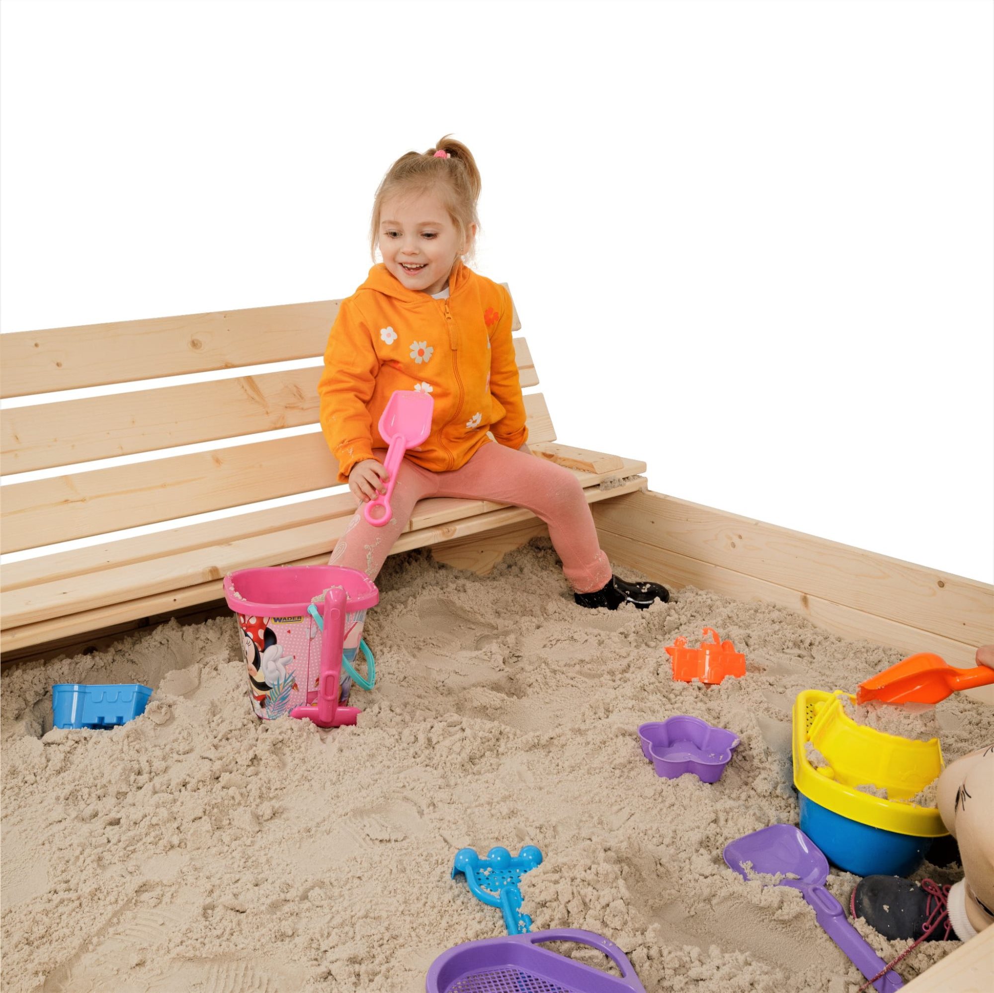 SAND TROPIC Drevené pieskovisko s lavičkami a príslušenstvom 150x137 cm (prírodné)