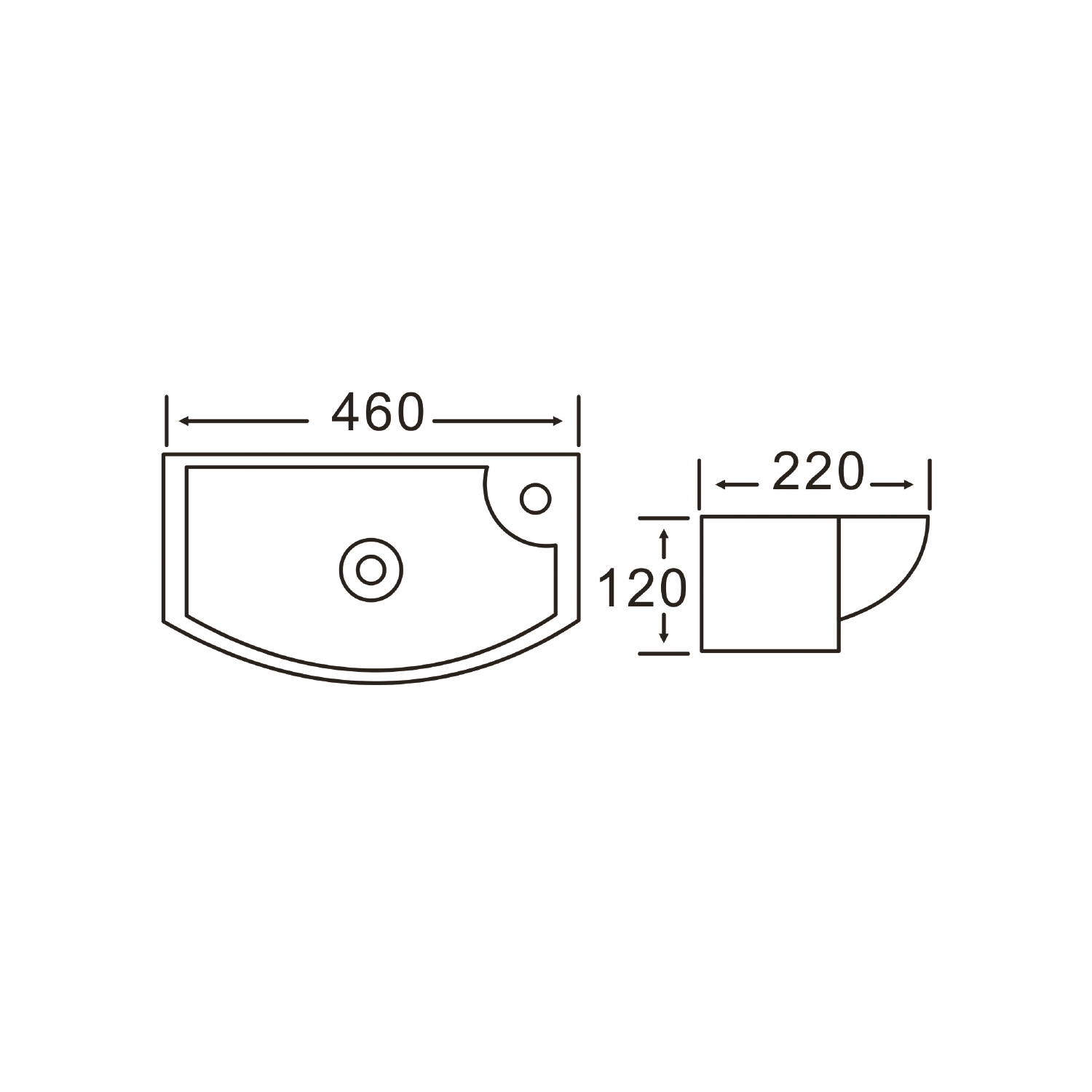 Sapho CARLON keramické umývadlo, 45x23cm, otvor pre batériu vpravo, biela AR458
