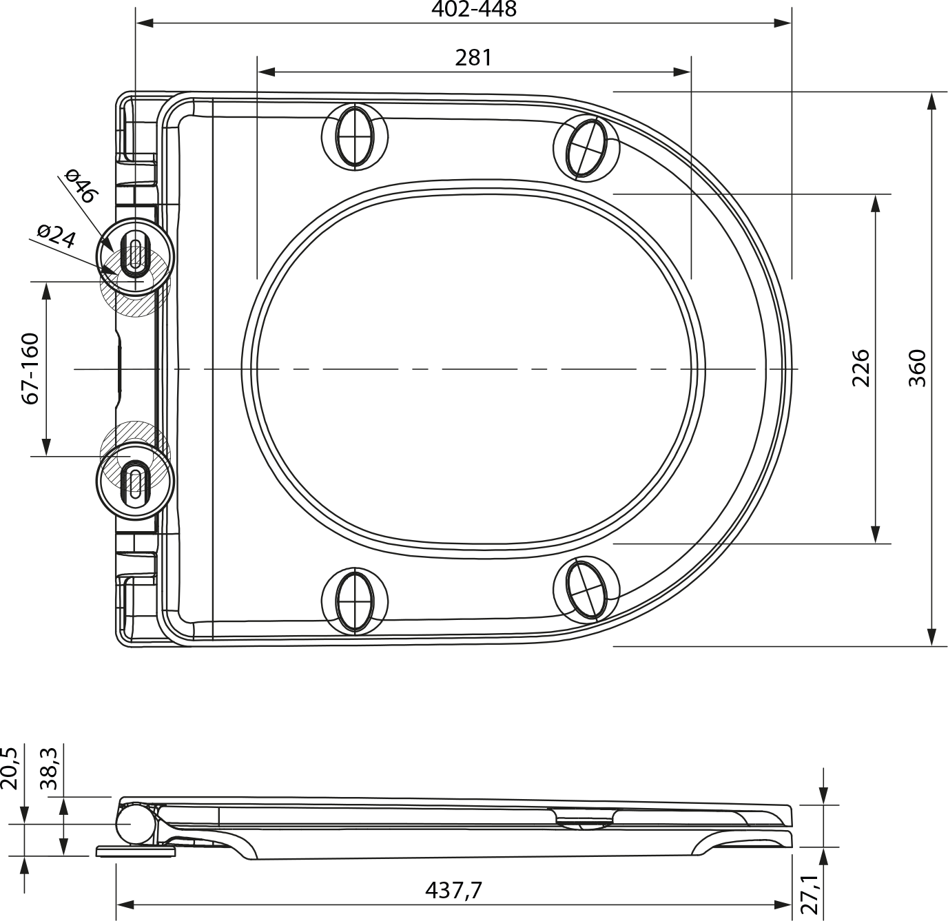 - Výbava: Soft Close (pomalé sklápanie), Easy Take (odnímateľné sedátko), SLIM (tenké)