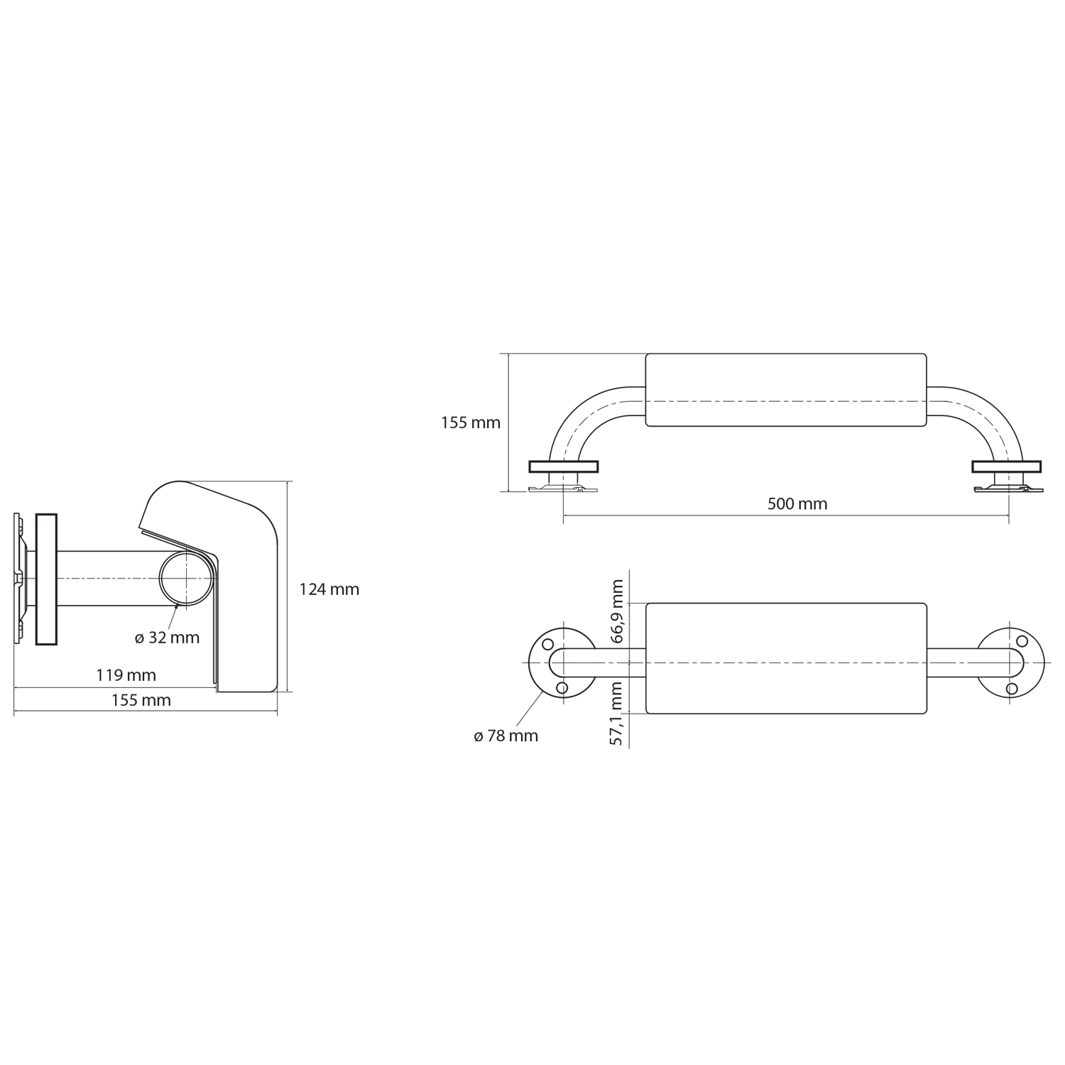 Sapho HANDICAP madlo s chrbtovou opierkou, 500mm, nerez lesk XH575