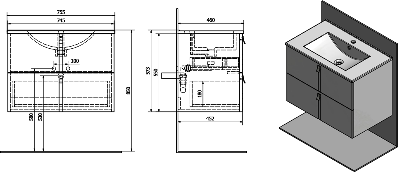 Pre bezproblémové otváranie/zatváranie zásuviek je nutné vytvoriť pri inštalácii medzi korpusy oboch skriniek šírky 75 cm pod umývadlo SLIM 150cm (kód 1601-150) dištančnú medzeru do šírky 2 mm pomocou 4 ks samolepiacich tlmiacich šošoviek.