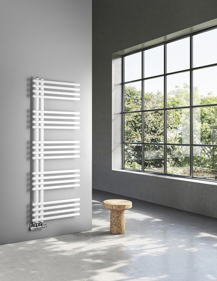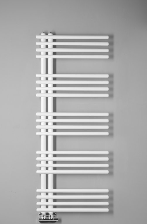 Klasické rúrky s kruhovým profilom zostavené v dizajnovom radiátore, ktorý je možné vďaka stredovému pripojeniu s rozstupom 50 mm kombinovať s dizajnovými ventilmi z našej ponuky.
