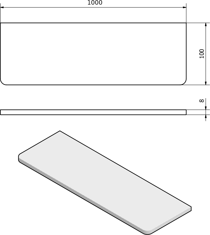 Sapho Sklenená polica 1000mm, čierna/číre sklo MY009B-18