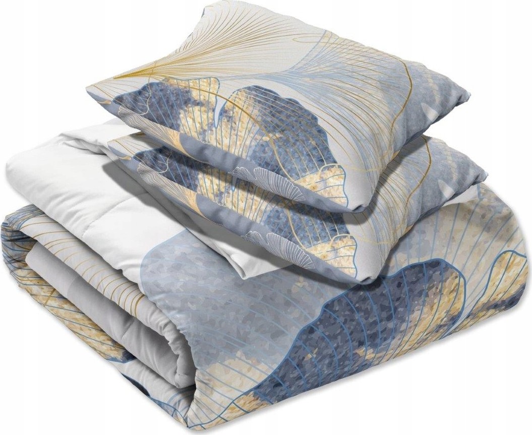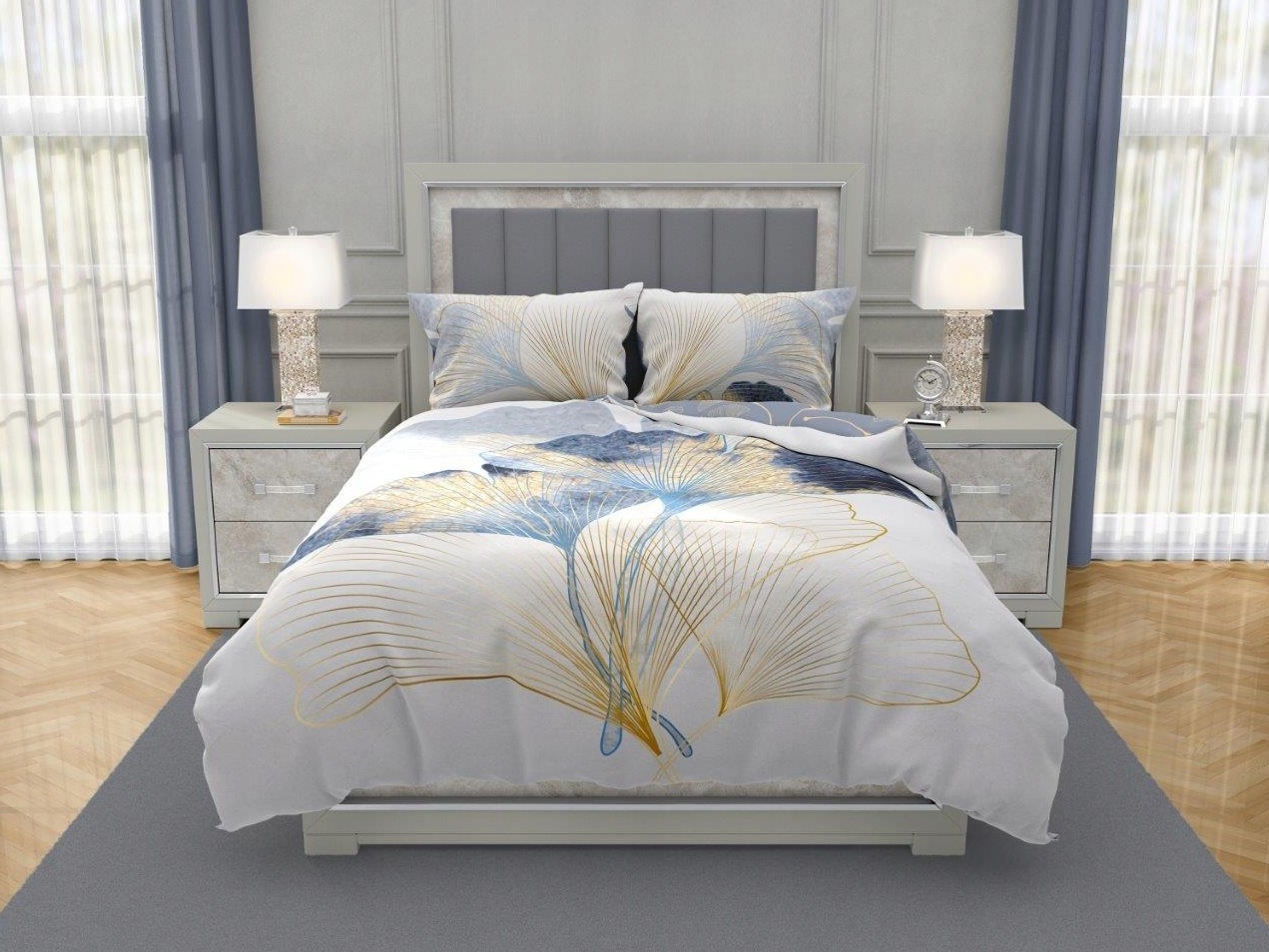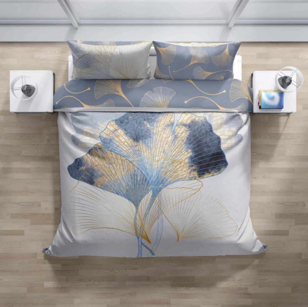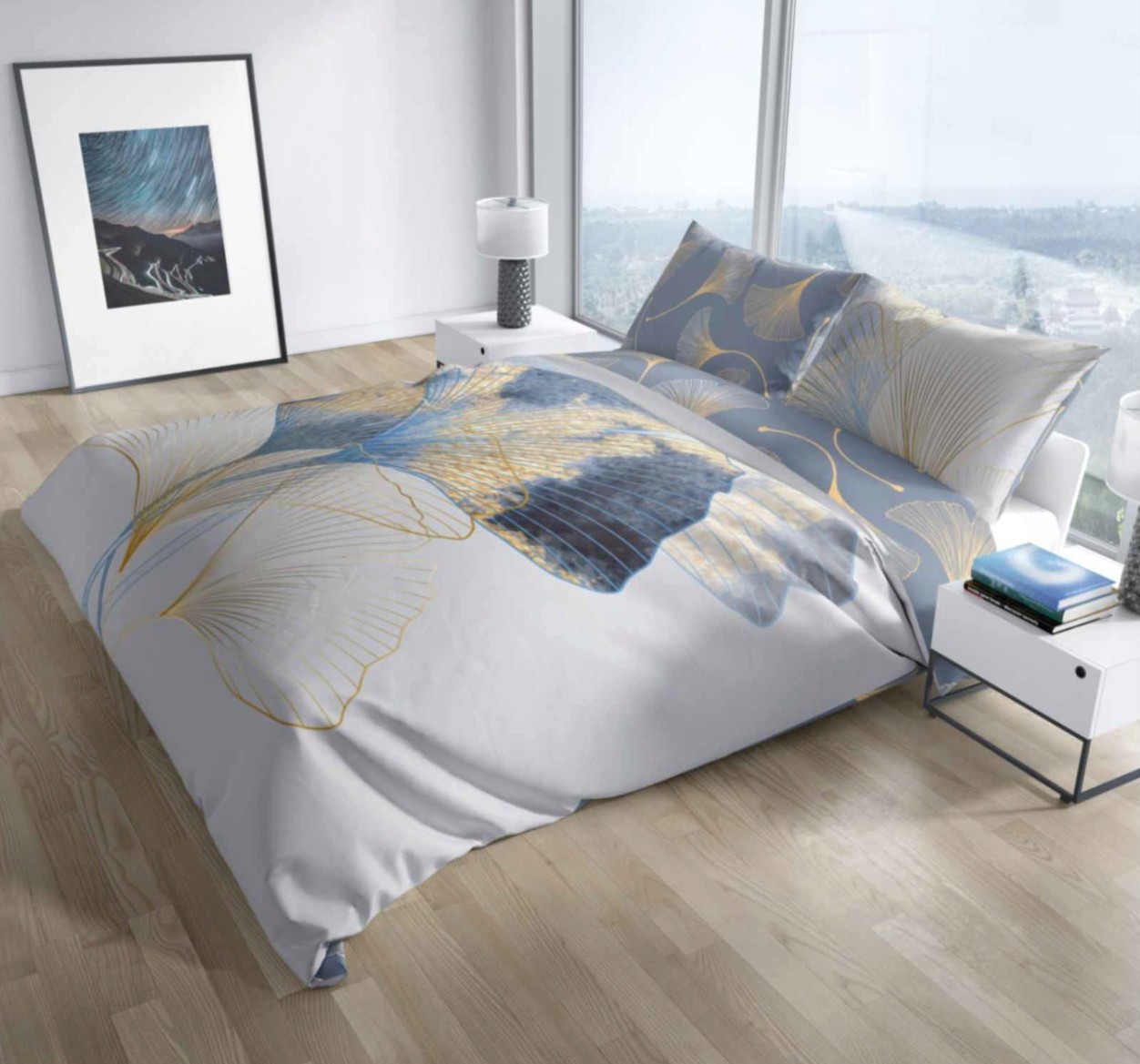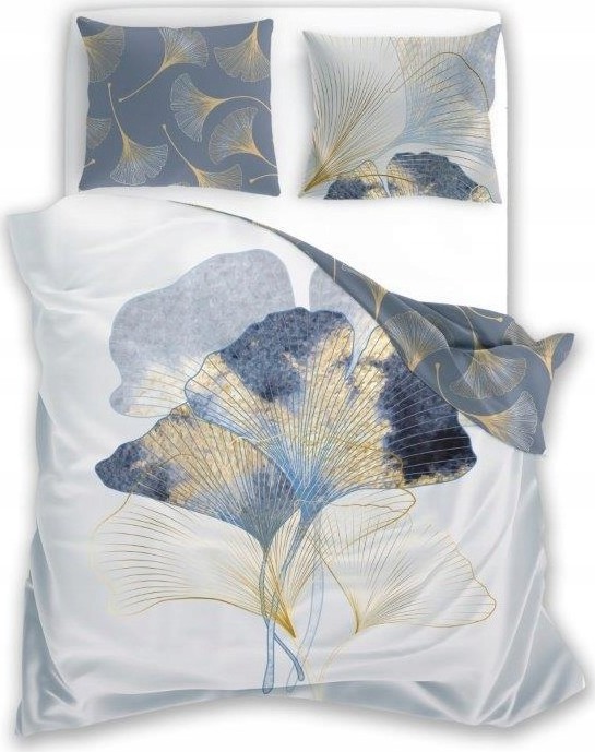 Saténové obliečky NOBILE Ginkgo - biele / šedé - 220x200 cm