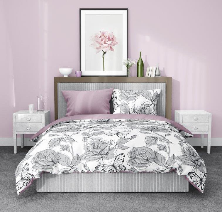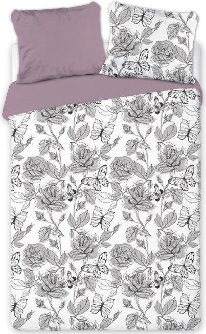 Saténové obliečky ELEGANT Butterfly - biele / fialové - 160x200 cm