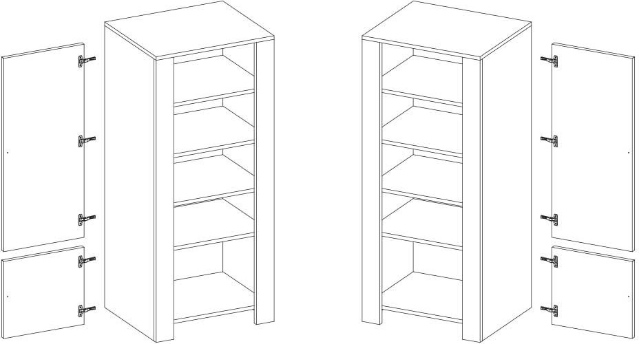 NEBRASKA je praktická a elegantná šatníková skriňa s veľkými policami, ktorá sa hodí do akejkoľvek izby, spálne, obývacej izby alebo dokonca jedálne. Skriňa má dve dvierka umiestnené pod sebou a štyri hlboké police vo vnútri. Celkový vzhľad skrine dotvárajú štvorcové kovové úchyty vo farbe starého zlata.