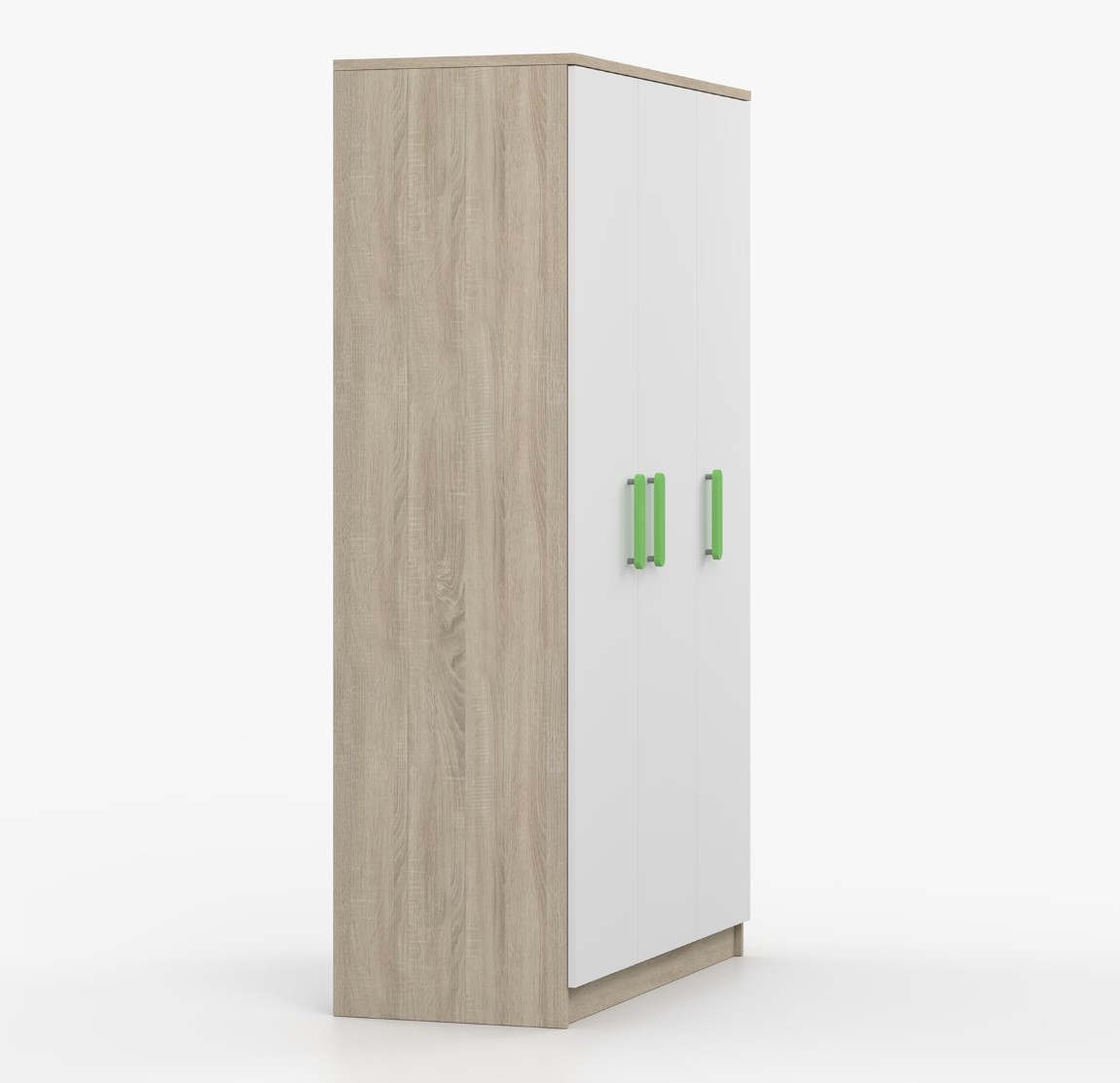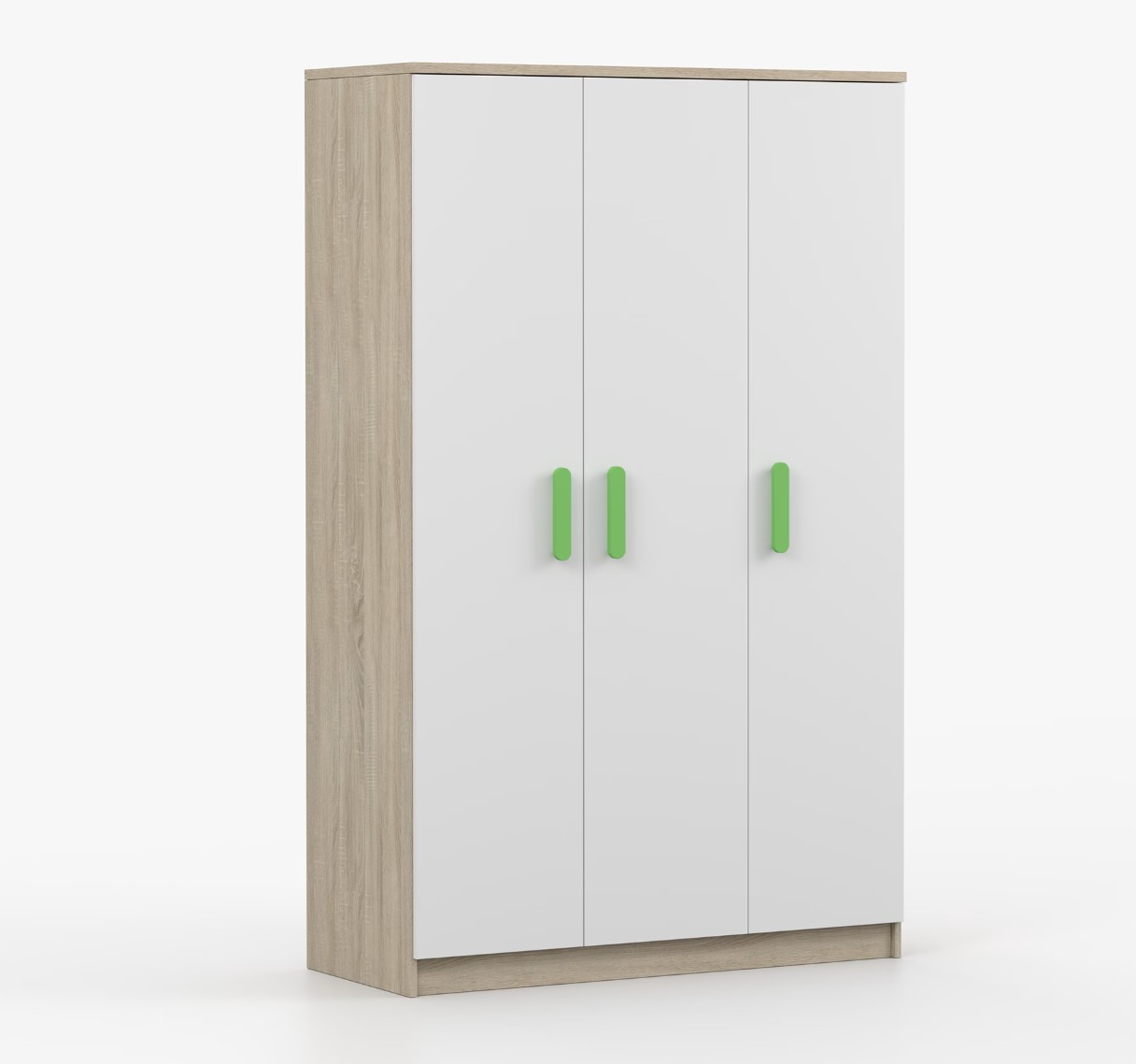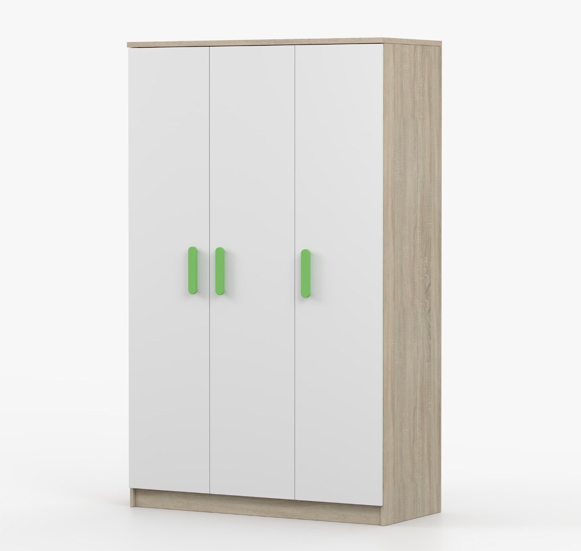 Trojdverová šatníková skriňa SCOUT sa vyznačuje praktickým úložným priestorom a veľkou kapacitou. S jednoduchým a moderným dizajnom sa skriňa SCOUT hodí do každého typu domácnosti – či už ide o detskú izbu alebo študentov byt. Skriňa je vyrobená z kvalitnej laminovanej dosky s hrúbkou 16 mm s odolnými ABS hranami, ktoré ju chránia pred mechanickým poškodením. Šatníková skriňa poskytuje veľký úložný priestor s dostatočným množstvom políc i miesto na zavesenie oblečenia. Dvere sú opatrené drevenými farebnými úchytkami a otvárajú sa tradičným spôsobom.