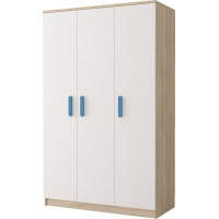 Trojdverová šatníková skriňa SCOUT sa vyznačuje praktickým úložným priestorom a veľkou kapacitou. S jednoduchým a moderným dizajnom sa skriňa SCOUT hodí do každého typu domácnosti – či už ide o detskú izbu alebo študentov byt. Skriňa je vyrobená z kvalitnej laminovanej dosky s hrúbkou 16 mm s odolnými ABS hranami, ktoré ju chránia pred mechanickým poškodením. Šatníková skriňa poskytuje veľký úložný priestor s dostatočným množstvom políc i miesto na zavesenie oblečenia. Dvere sú opatrené drevenými farebnými úchytkami a otvárajú sa tradičným spôsobom.