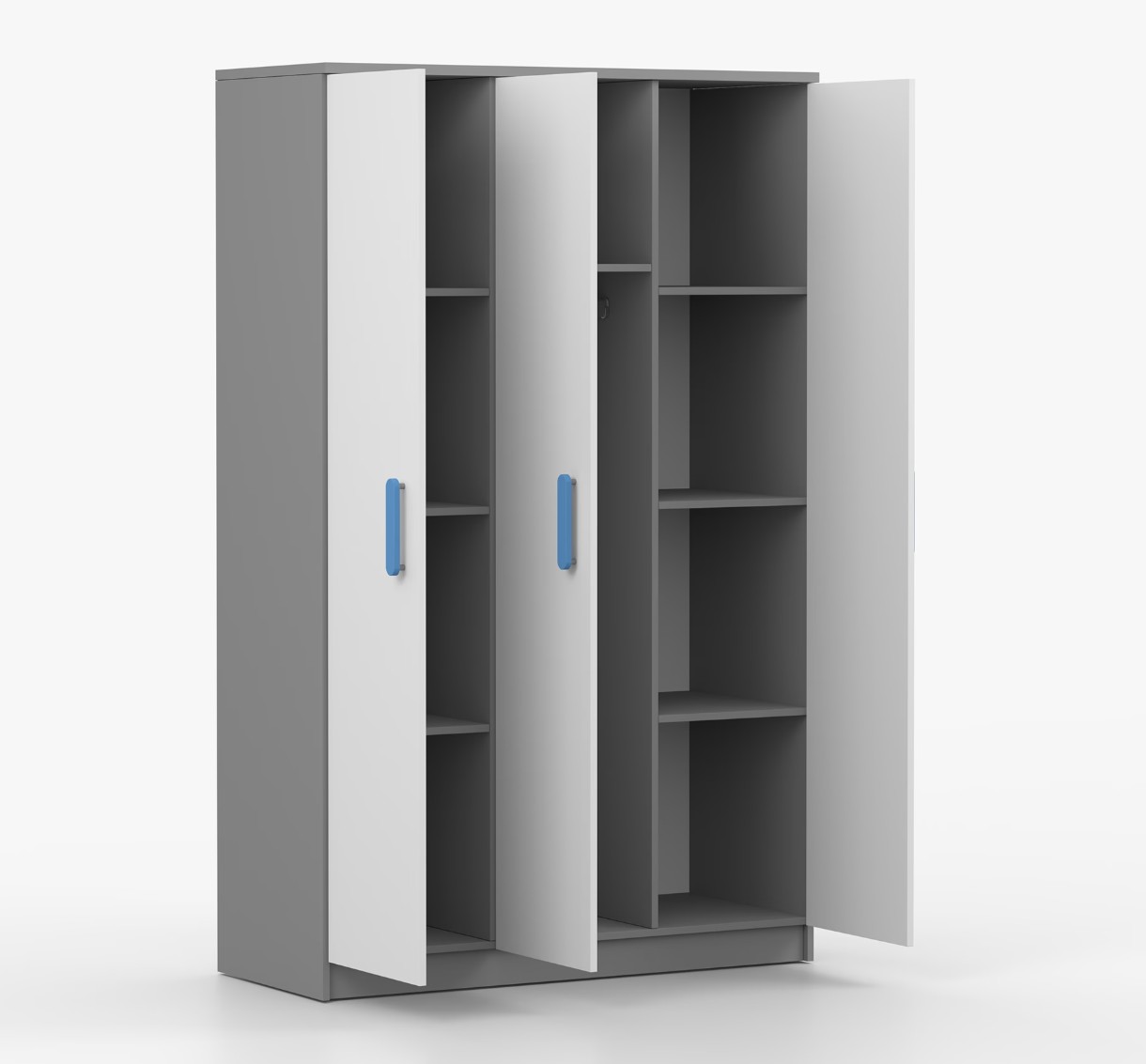 Trojdverová šatníková skriňa SCOUT sa vyznačuje praktickým úložným priestorom a veľkou kapacitou. S jednoduchým a moderným dizajnom sa skriňa SCOUT hodí do každého typu domácnosti – či už ide o detskú izbu alebo študentov byt. Skriňa je vyrobená z kvalitnej laminovanej dosky s hrúbkou 16 mm s odolnými ABS hranami, ktoré ju chránia pred mechanickým poškodením. Šatníková skriňa poskytuje veľký úložný priestor s dostatočným množstvom políc i miesto na zavesenie oblečenia. Dvere sú opatrené drevenými farebnými úchytkami a otvárajú sa tradičným spôsobom.