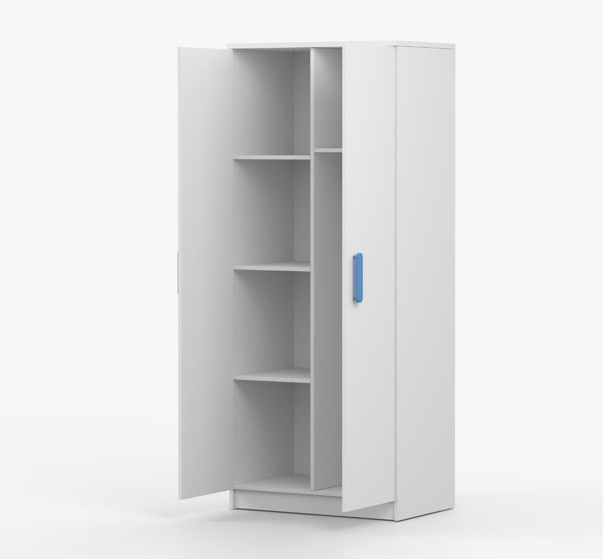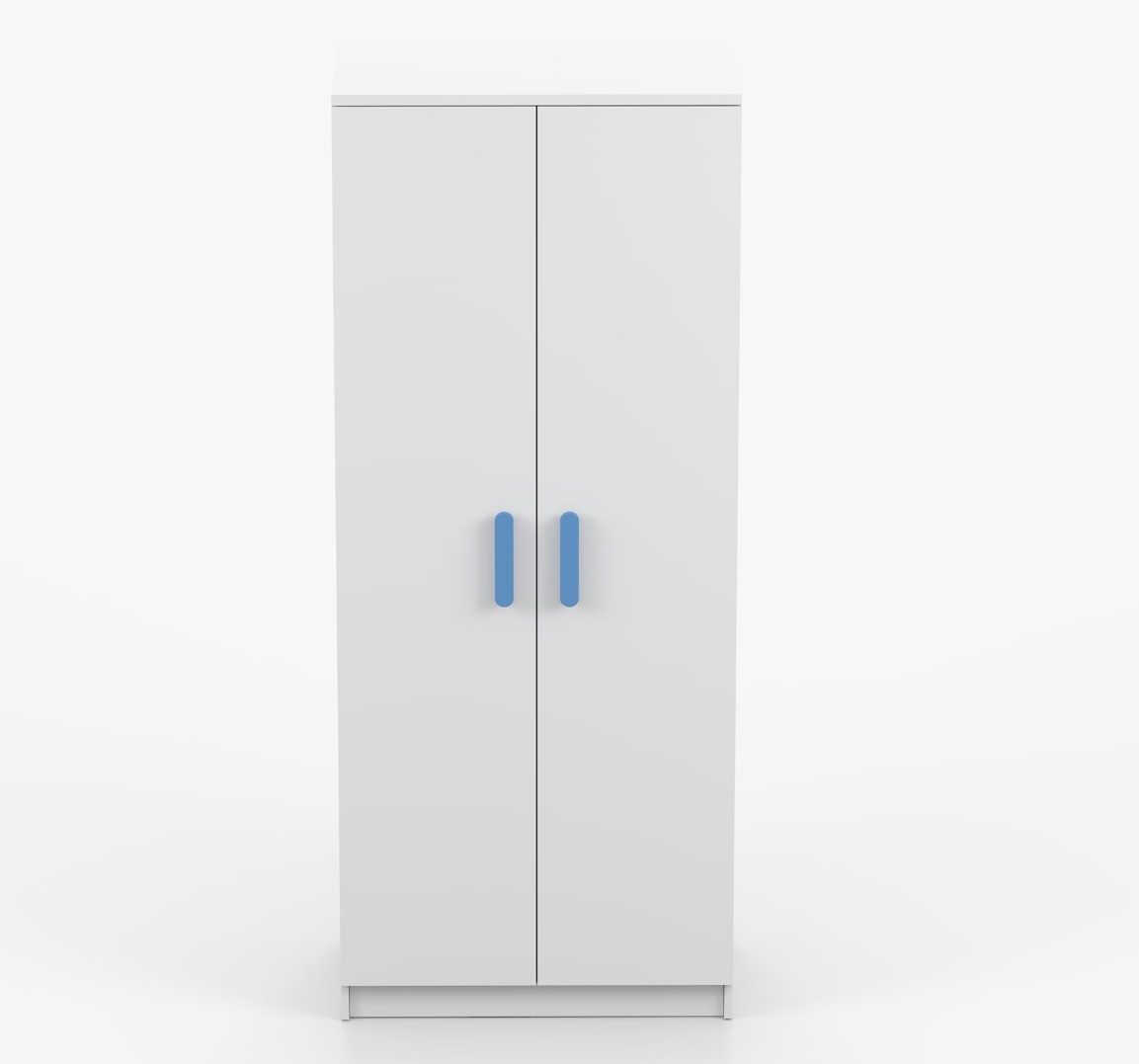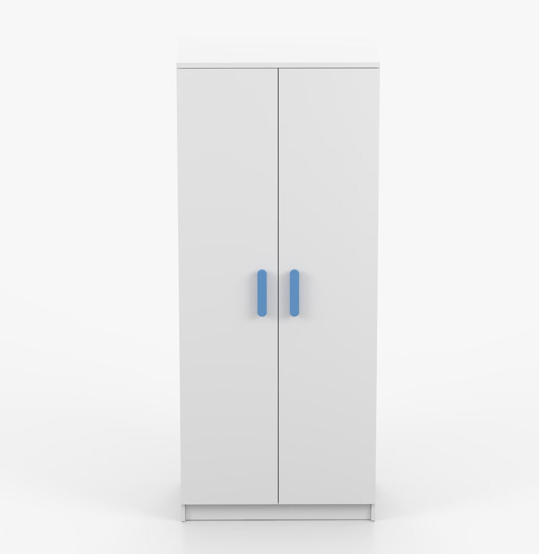 Dvojdverová šatníková skriňa SCOUT s jednoduchým a moderným dizajnom sa hodí do každého typu domácnosti - či už ide o detskú izbu alebo študentov byt. Skriňa je vyrobená z kvalitnej laminovanej dosky s hrúbkou 16 mm s odolnými ABS hranami, ktoré ju chránia pred mechanickým poškodením. Šatníková skriňa poskytuje veľký úložný priestor s dostatočným množstvom políc i miesto na zavesenie oblečenia. Dvere sú opatrené drevenými farebnými úchytkami a otvárajú sa tradičným spôsobom.