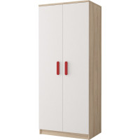 Dvojdverová šatníková skriňa SCOUT s jednoduchým a moderným dizajnom sa hodí do každého typu domácnosti - či už ide o detskú izbu alebo študentov byt. Skriňa je vyrobená z kvalitnej laminovanej dosky s hrúbkou 16 mm s odolnými ABS hranami, ktoré ju chránia pred mechanickým poškodením. Šatníková skriňa poskytuje veľký úložný priestor s dostatočným množstvom políc i miesto na zavesenie oblečenia. Dvere sú opatrené drevenými farebnými úchytkami a otvárajú sa tradičným spôsobom.