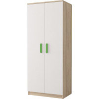 Dvojdverová šatníková skriňa SCOUT s jednoduchým a moderným dizajnom sa hodí do každého typu domácnosti - či už ide o detskú izbu alebo študentov byt. Skriňa je vyrobená z kvalitnej laminovanej dosky s hrúbkou 16 mm s odolnými ABS hranami, ktoré ju chránia pred mechanickým poškodením. Šatníková skriňa poskytuje veľký úložný priestor s dostatočným množstvom políc i miesto na zavesenie oblečenia. Dvere sú opatrené drevenými farebnými úchytkami a otvárajú sa tradičným spôsobom.