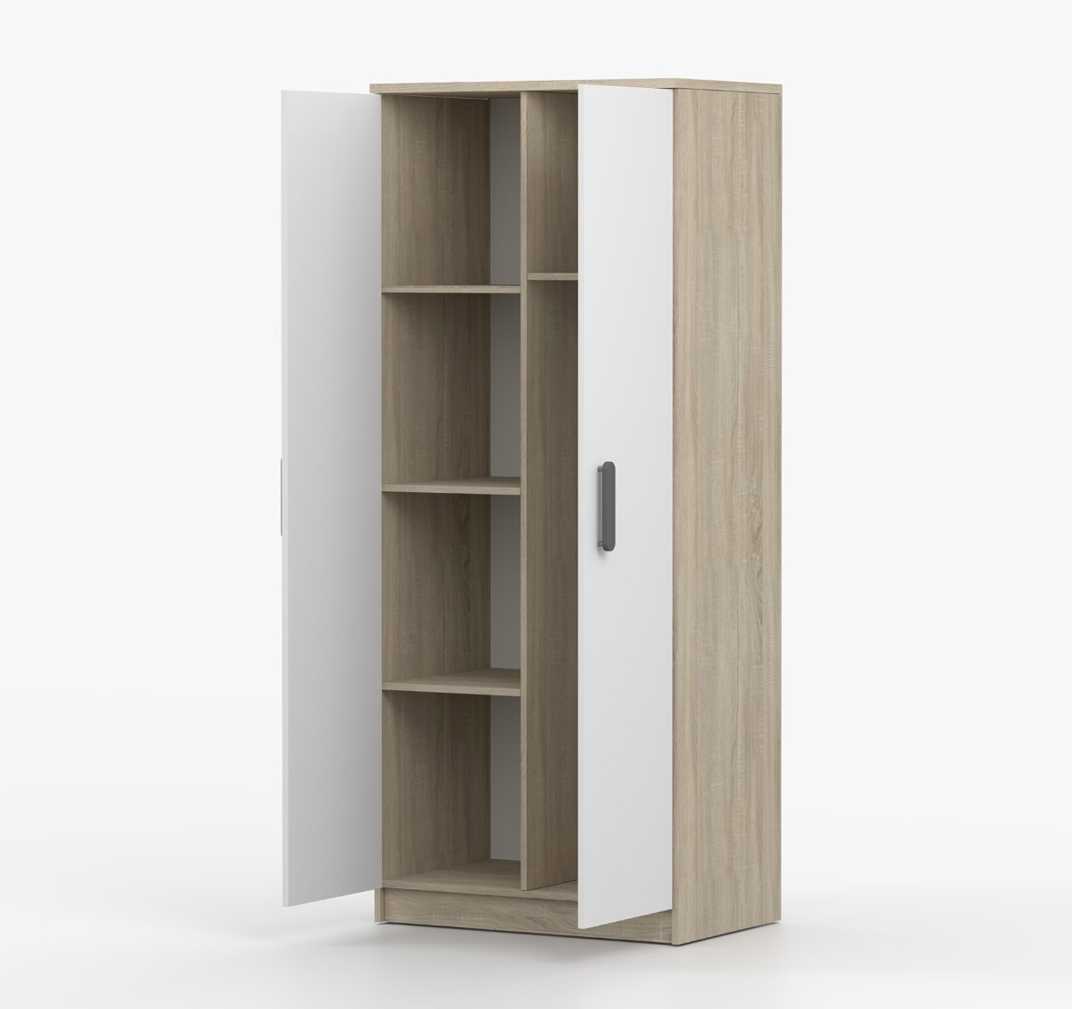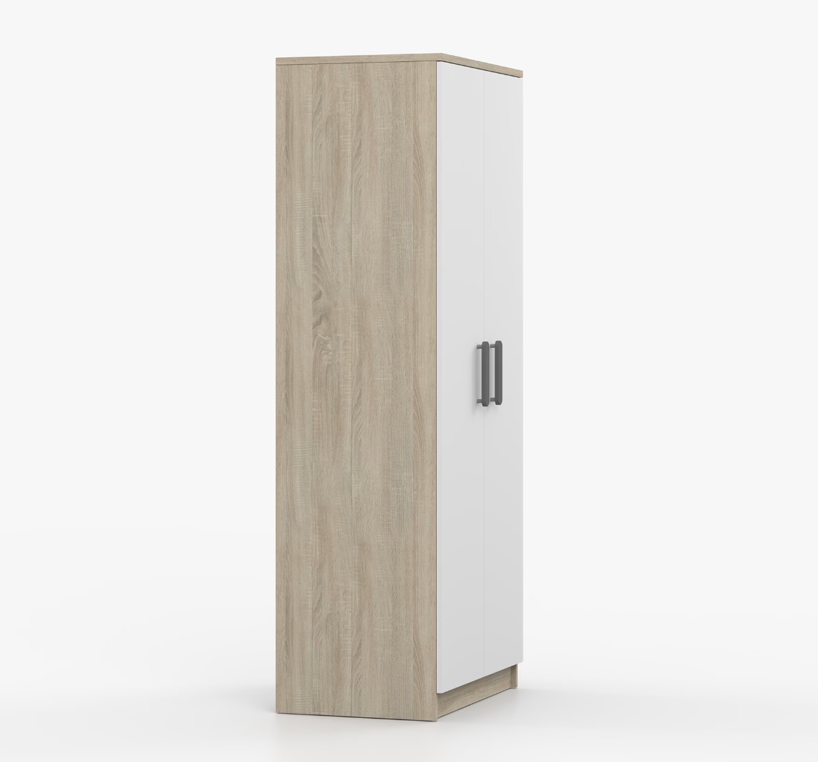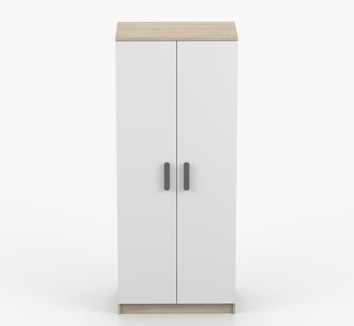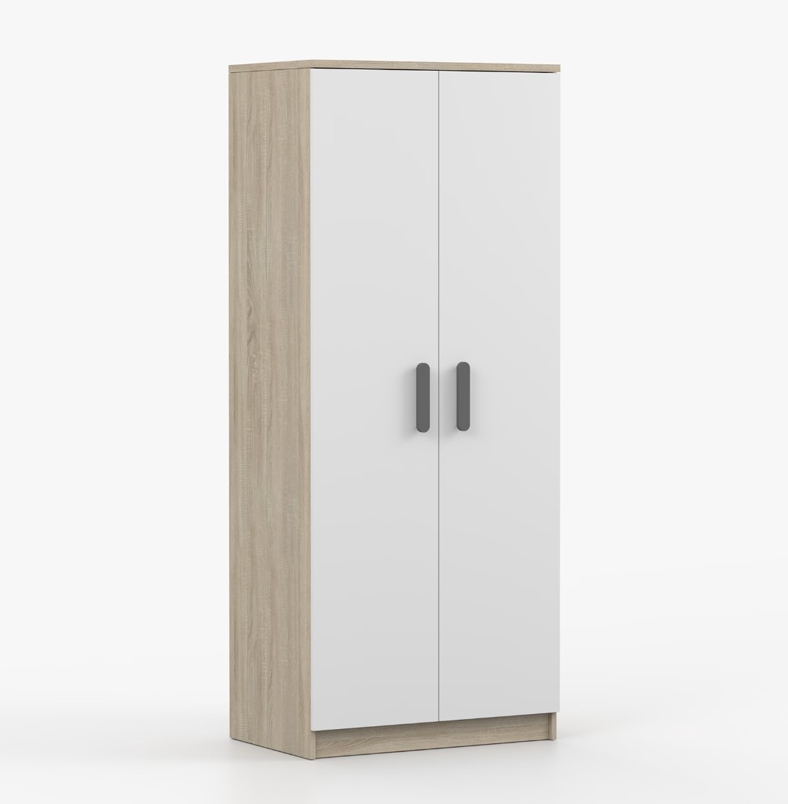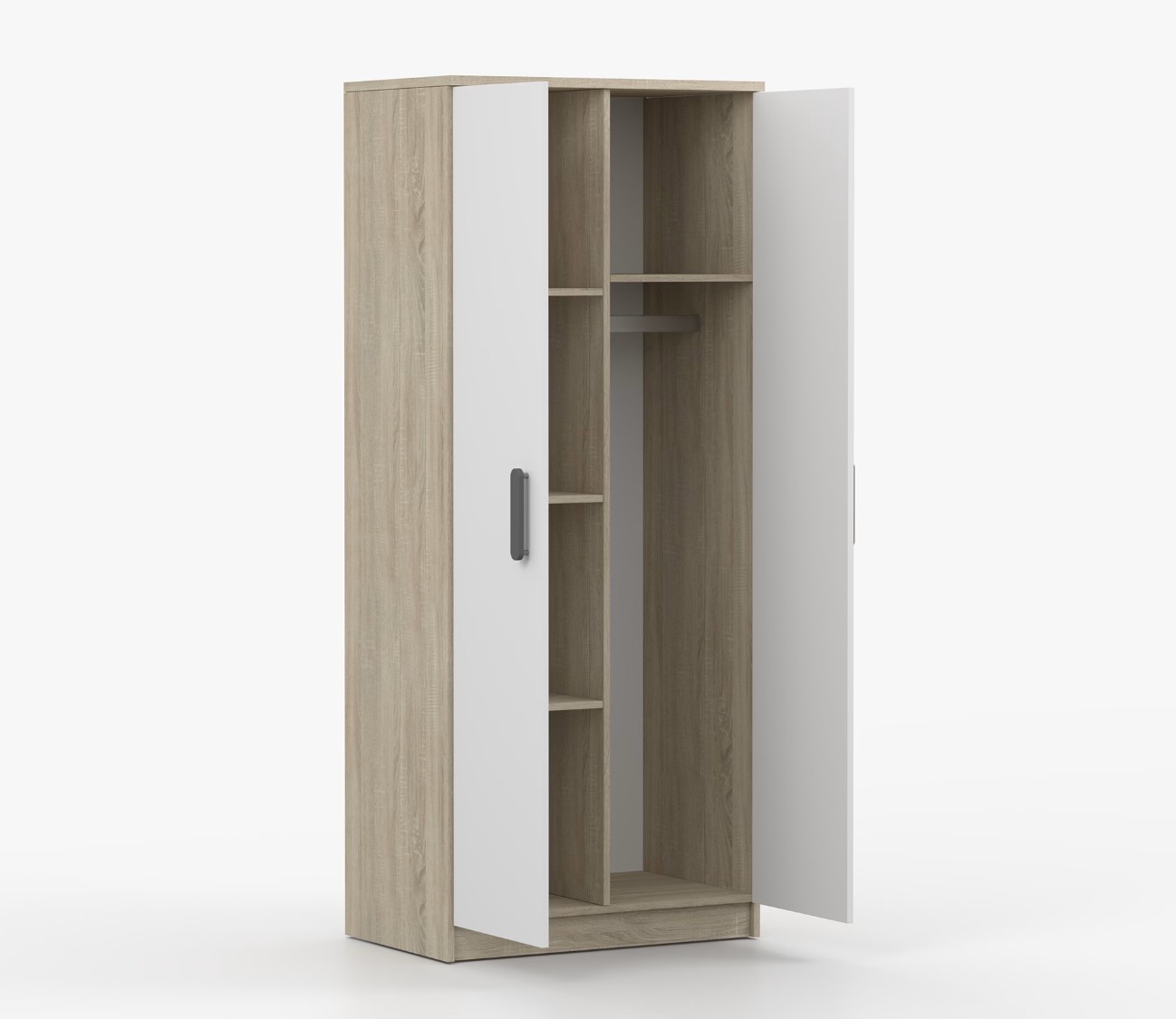 Dvojdverová šatníková skriňa SCOUT s jednoduchým a moderným dizajnom sa hodí do každého typu domácnosti - či už ide o detskú izbu alebo študentov byt. Skriňa je vyrobená z kvalitnej laminovanej dosky s hrúbkou 16 mm s odolnými ABS hranami, ktoré ju chránia pred mechanickým poškodením. Šatníková skriňa poskytuje veľký úložný priestor s dostatočným množstvom políc i miesto na zavesenie oblečenia. Dvere sú opatrené drevenými farebnými úchytkami a otvárajú sa tradičným spôsobom.
