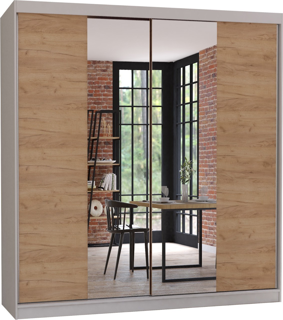 VARIO S 203 je priestranná a elegantná šatníková skriňa s posuvnými dverami v dekore dub craft a so zrkadlom, ktoré opticky zväčšuje miestnosť. Vďaka možnosti voľby medzi rôznymi farbami korpusov sa skriňa hodí do mnohých miestností. Skriňa je rozdelená na dve časti, ktoré sú vybavené nielen priestrannými policami a závesnou tyčou, ale aj dostatočným priestorom na uloženie veľkého množstva oblečenia, čo z nej robí praktickú voľbu pre každú domácnosť. Šatníková skriňa je vybavená systémom posuvných dverí, ktorý uľahčuje jej používanie a nezaberá miesto. Veľká kapacita a funkčnosť v kombinácii s moderným dizajnom – to sú hlavné vlastnosti každej šatníkovej skrine VARIO.