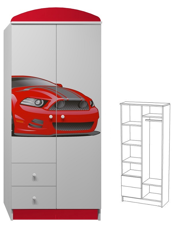 Šatníková skriňa ČERVENÝ ŠPORTIAK - TYP E, červená / biela