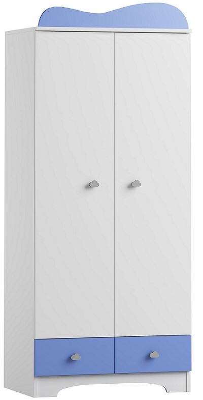 Priestranná policová šatníková skriňa CLOUDS sa vyznačuje vysokou kvalitou spracovania, ktorú zaisťujú kvalitné lamino dosky o sile 18 mm. Hrany nábytku sú opatrené ABS/PVC materiálom, ktorý ho chráni pred mechanickým poškodením a vlhkosťou. Farbu skrine môžete vyberať z našej ponuky podľa vašich požiadaviek. Skriňa je rozdelená policami po celej šírke skrine. Ďalší úložný priestor poskytujú šuplíky v spodnej časti skrine. Získate tak veľké množstvo úložných priestorov pre oblečenie a doplnky. Dvierka aj čelá šuplíkov sú osadené plastovými úchytmi v tvare mráčikov, charakteristickými pre celú kolekciu. Úchyty dodávajú nábytku jedinečný charakter a štýl. Šatníková skriňa CLOUDS skvele doplní nábytok z tejto kolekcie a vy tak môžete vytvoriť kombináciu presne podľa potrieb vášho dieťaťa alebo mladého študenta.