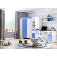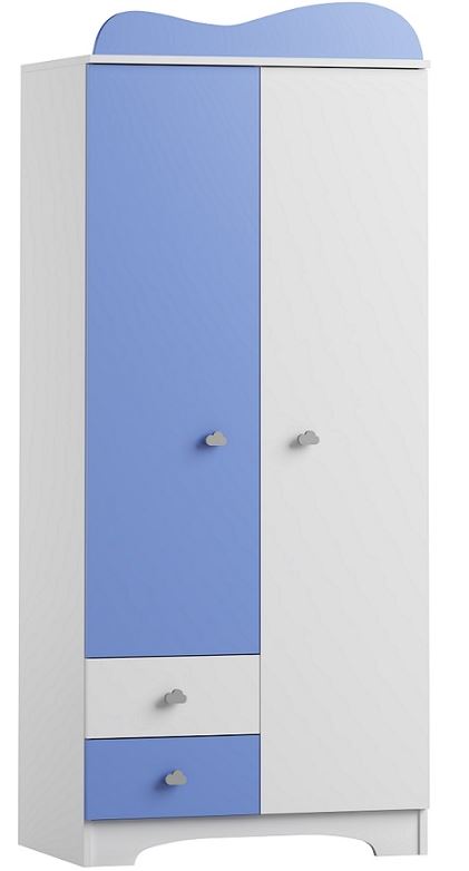 Priestranná šatníková skriňa CLOUDS sa vyznačuje vysokou kvalitou spracovania, ktorú zaisťujú kvalitné lamino dosky o sile 18 mm. Hrany nábytku sú opatrené ABS/PVC materiálom, ktorý ho chráni pred mechanickým poškodením a vlhkosťou. Farbu skrine môžete vyberať z našej širokej ponuky podľa vašich predstáv. Skriňa je rozdelená do dvoch častí - pravá strana obsahuje police a šatníkovú tyč, ľavá strana je rozdelená policami. Ďalší úložný priestor poskytujú šuplíky v ľavej časti skrine. Získate tak veľké množstvo úložných priestorov pre oblečenie a doplnky. Dvierka aj čelá šuplíkov sú osadené plastovými úchytmi v tvare mráčikov, charakteristickými pre celú kolekciu. Úchyty dodávajú nábytku jedinečný charakter a štýl. Šatníková skriňa CLOUDS skvele doplní nábytok z tejto kolekcie a vy tak môžete vytvoriť kombináciu presne podľa potrieb vášho dieťaťa alebo mladého študenta.