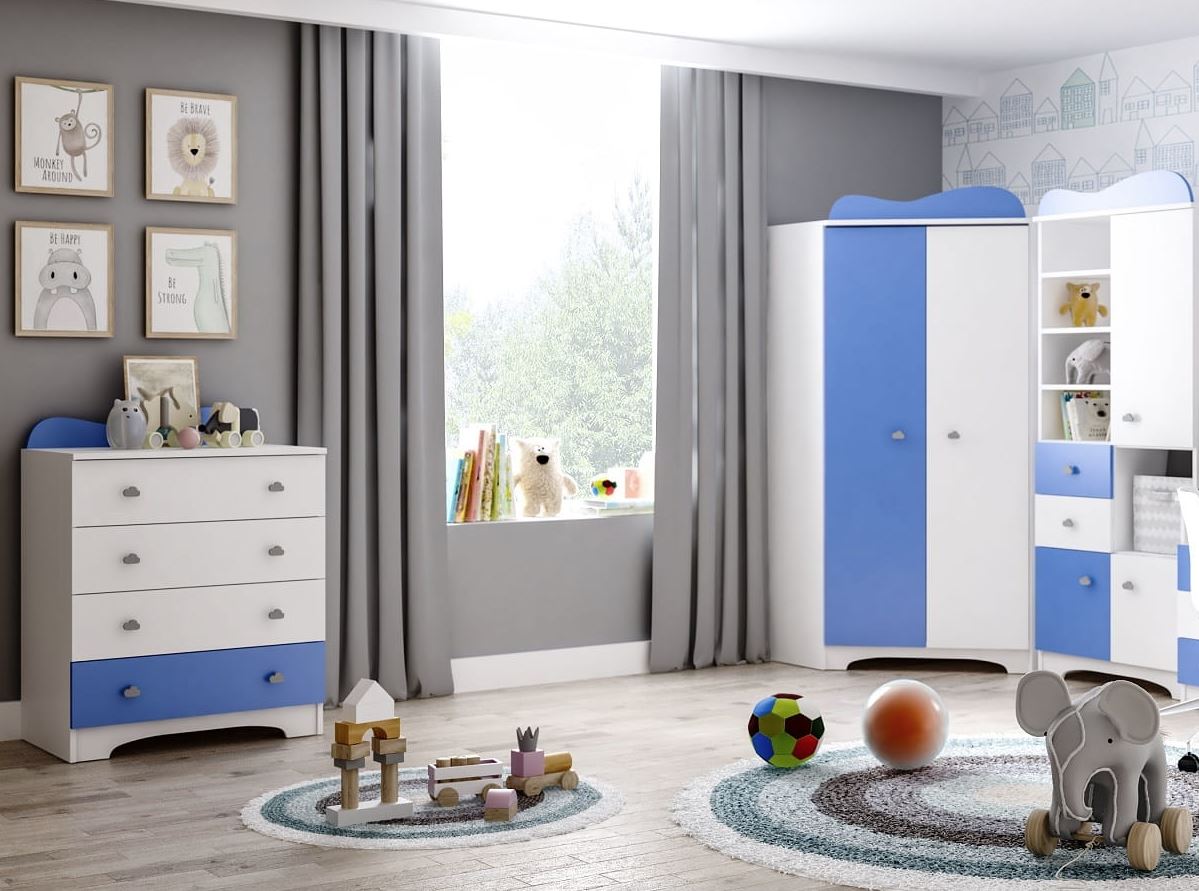 Priestranná šatníková skriňa s nástavcom CLOUDS sa vyznačuje vysokou kvalitou spracovania, ktorú zaisťujú kvalitné lamino dosky o hrúbke 18 mm. Hrany nábytku sú opatrené ABS/PVC materiálom, ktorý ho chráni pred mechanickým poškodením a vlhkosťou. Farbu skrine môžete voliť z našej širokej ponuky podľa vlastných požiadaviek. Skriňa je rozdelená do dvoch častí. Pravá časť obsahuje dve police a šatníkovú tyč, ľavá časť je rozdelená policami. Ďalší úložný priestor poskytujú šuplíky v ľavej časti skrine a nadstavec s policou. Získate tak veľké množstvo úložných priestorov pre oblečenie a doplnky. Dvierka aj čelá šuplíkov sú osadené plastovými úchytmi v tvare mráčikov, charakteristickými pre celú kolekciu. Úchyty dodávajú nábytku jedinečný charakter a štýl. Šatníková skriňa CLOUDS skvele doplní nábytok z tejto kolekcie a vy tak môžete vytvoriť kombináciu presne podľa potrieb vášho dieťaťa alebo mladého študenta.