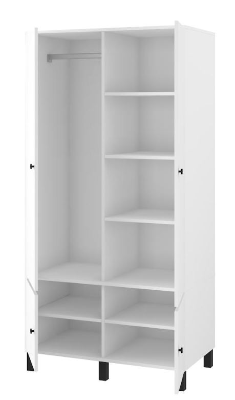 Štýlová a praktická šatníková skriňa, ktorá sa skvele hodí nielen do spálne, ale aj do študentskej alebo detskej izby. Ponúka funkčné a účelné riešenie pre každý interiér. Je navrhnutá v modernom, minimalistickom dizajne, ktorý sa ľahko zladí s rôznymi štýlmi zariadenia. Šatníková skriňa ELEGANT v bielej farbe v kombinácii s modrou dokonale spája moderný dizajn s klasickou eleganciou. Je priestranná a praktická.