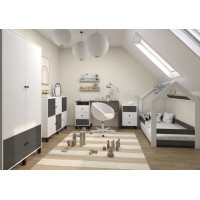 Štýlová a praktická šatníková skriňa, ktorá sa skvele hodí nielen do spálne, ale aj do študentskej alebo detskej izby. Ponúka funkčné a účelné riešenie pre každý interiér. Je navrhnutá v modernom, minimalistickom dizajne, ktorý sa ľahko zladí s rôznymi štýlmi zariadenia. Šatníková skriňa ELEGANT v bielej farbe v kombinácii s antracitovou dokonale spája moderný dizajn s klasickou eleganciou. Je priestranná a praktická.