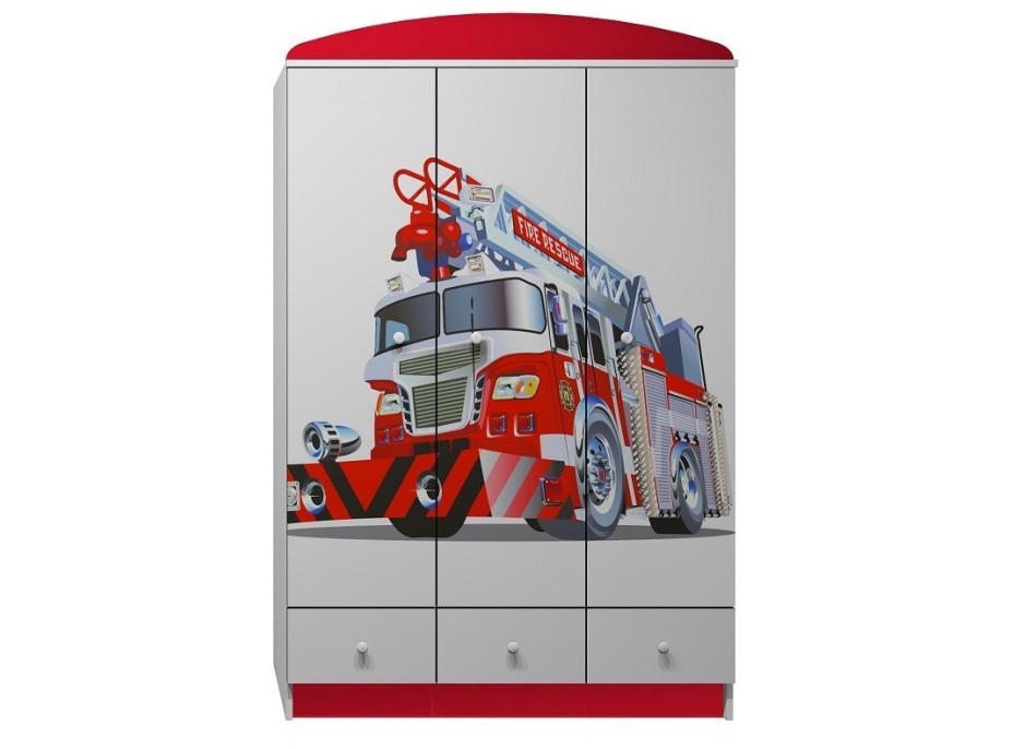 Táto šatníková skriňa je v skutočnosti all-in-one. Nájdete v nej všetky úložné priestory. Hneď v spodnej časti skrine nájdete tri šuplíky. Vrchná časť skrine je rozdelená do dvoch častí. V pravej samostatnej časti je päť políc. V ľavej časti je hore dlhá police a vo zvyšku veľký priestor sa šatníková tyčí.