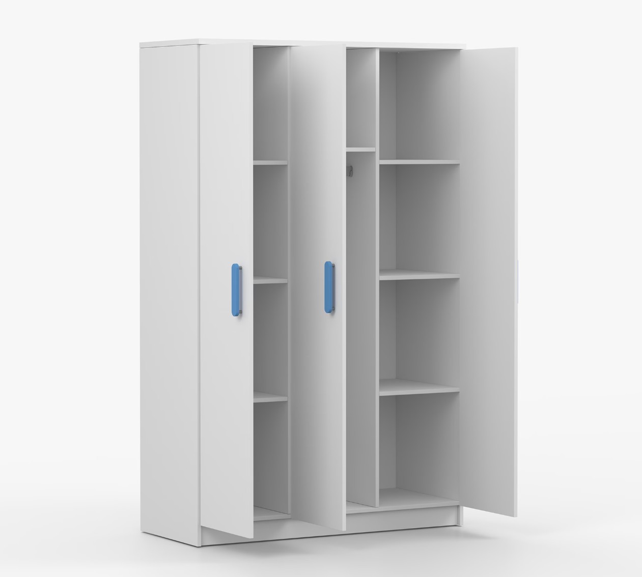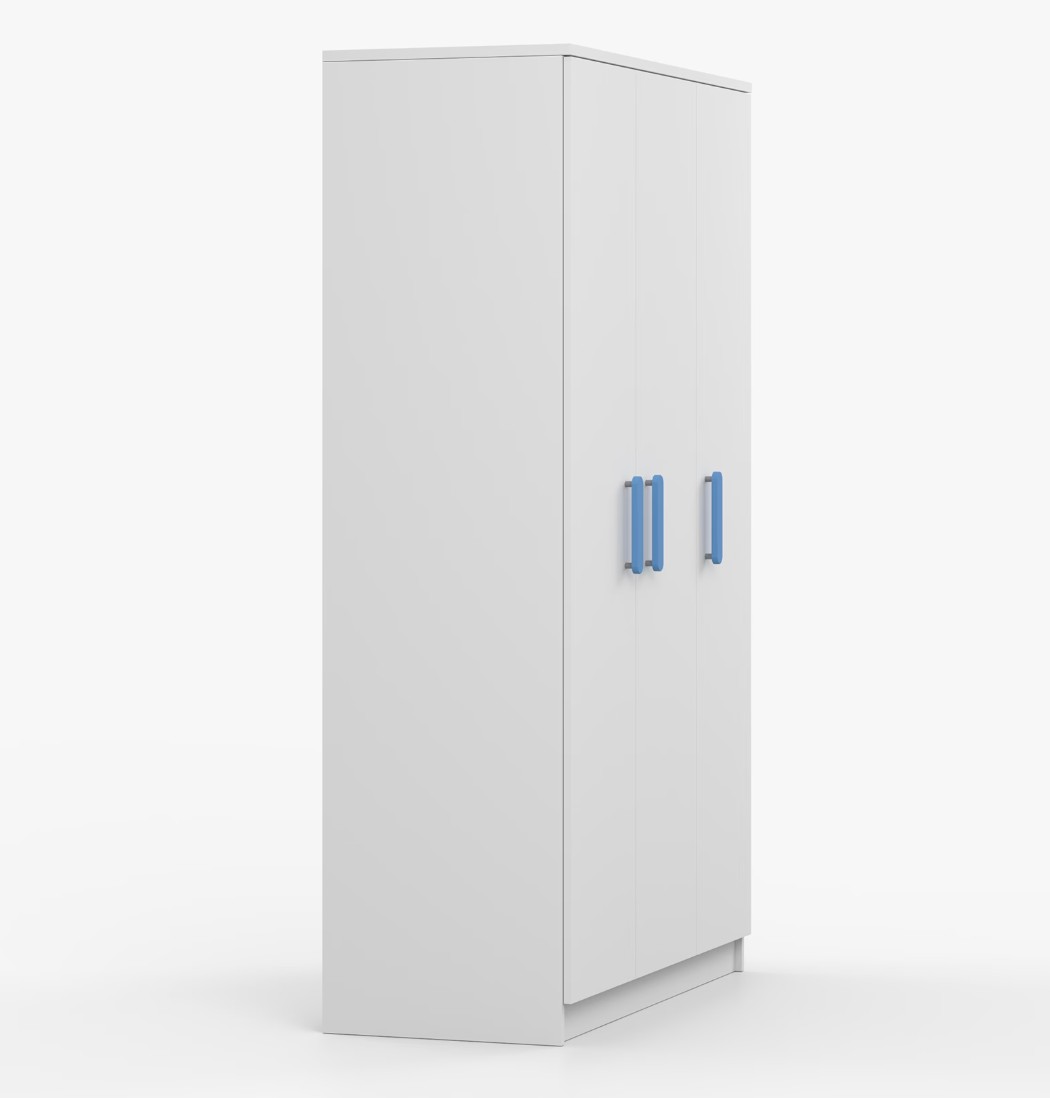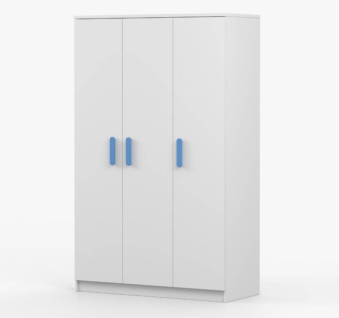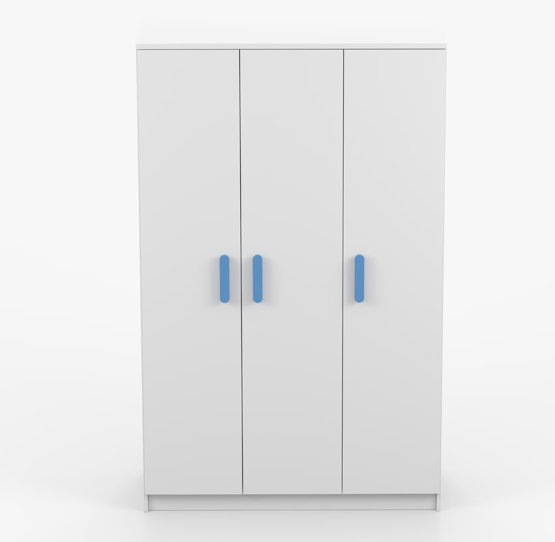 Trojdverová šatníková skriňa SMYK sa vyznačuje praktickým úložným priestorom a veľkou kapacitou. S jednoduchým a moderným dizajnom sa skriňa SMYK hodí do každého typu domácnosti – či už ide o detskú izbu alebo študentov byt. Skriňa je vyrobená z kvalitnej laminovanej dosky s hrúbkou 16 mm s odolnými ABS hranami, ktoré ju chránia pred mechanickým poškodením. Šatníková skriňa poskytuje veľký úložný priestor s dostatočným množstvom políc i miesto na zavesenie oblečenia. Dvere sú opatrené drevenými farebnými úchytkami a otvárajú sa tradičným spôsobom.