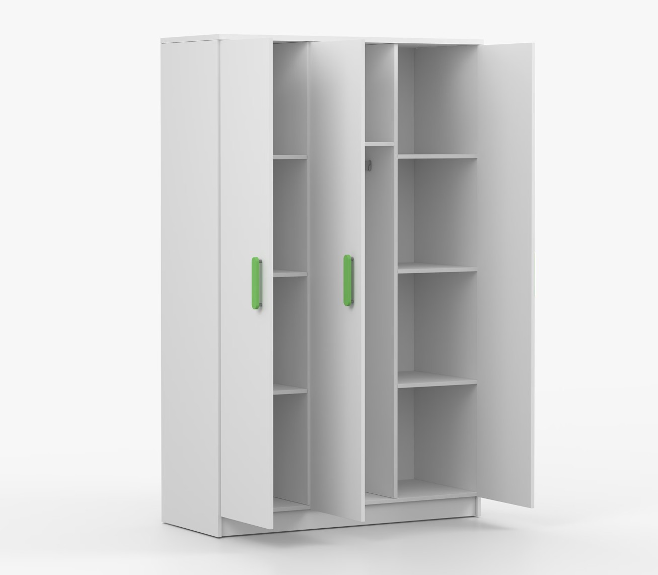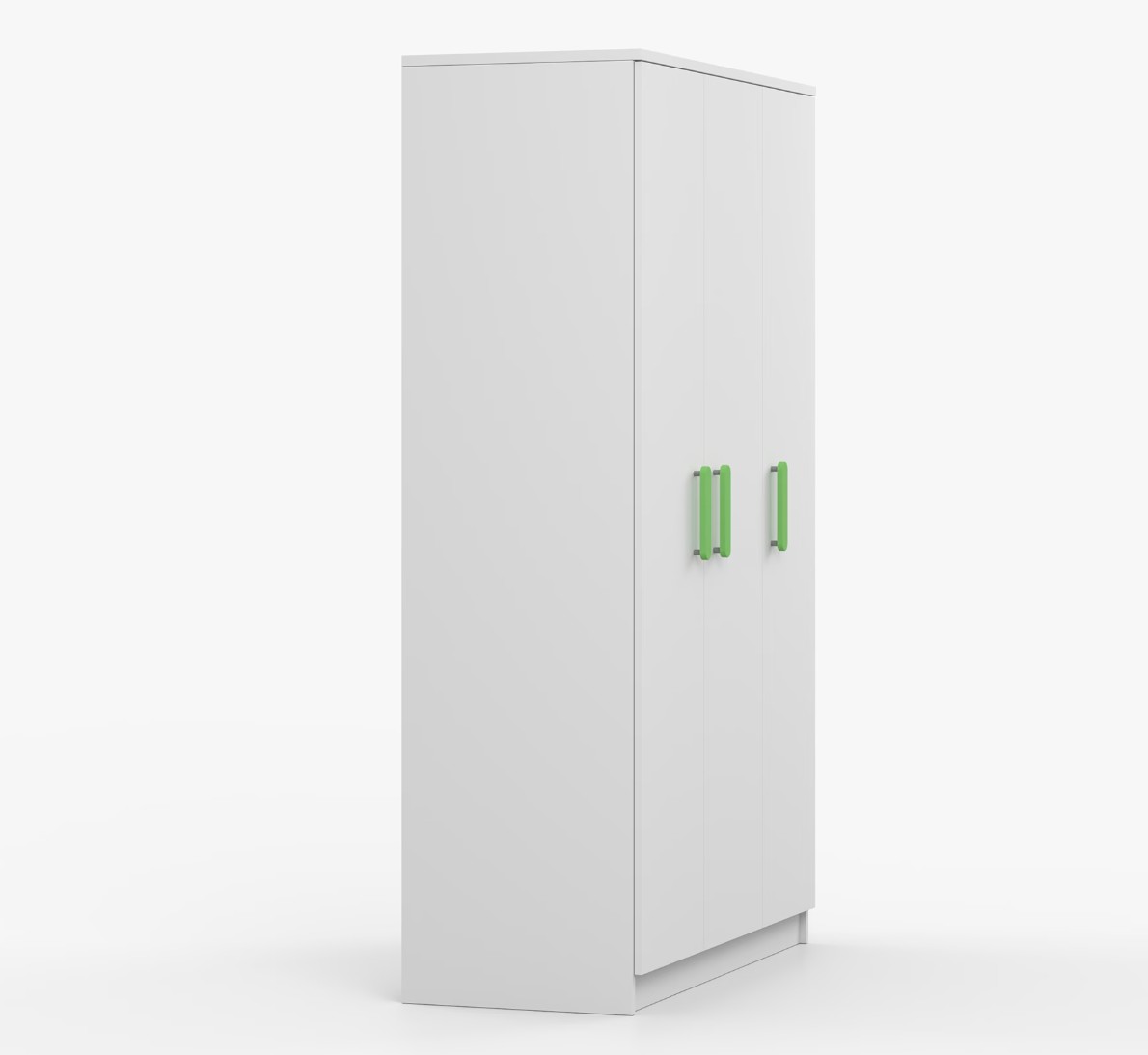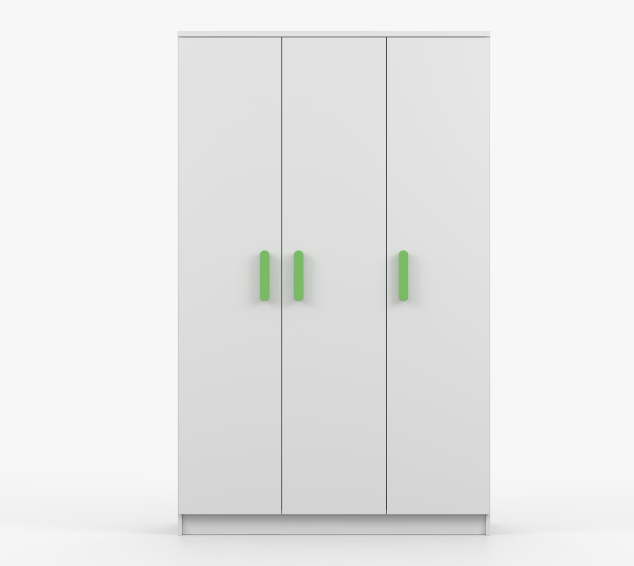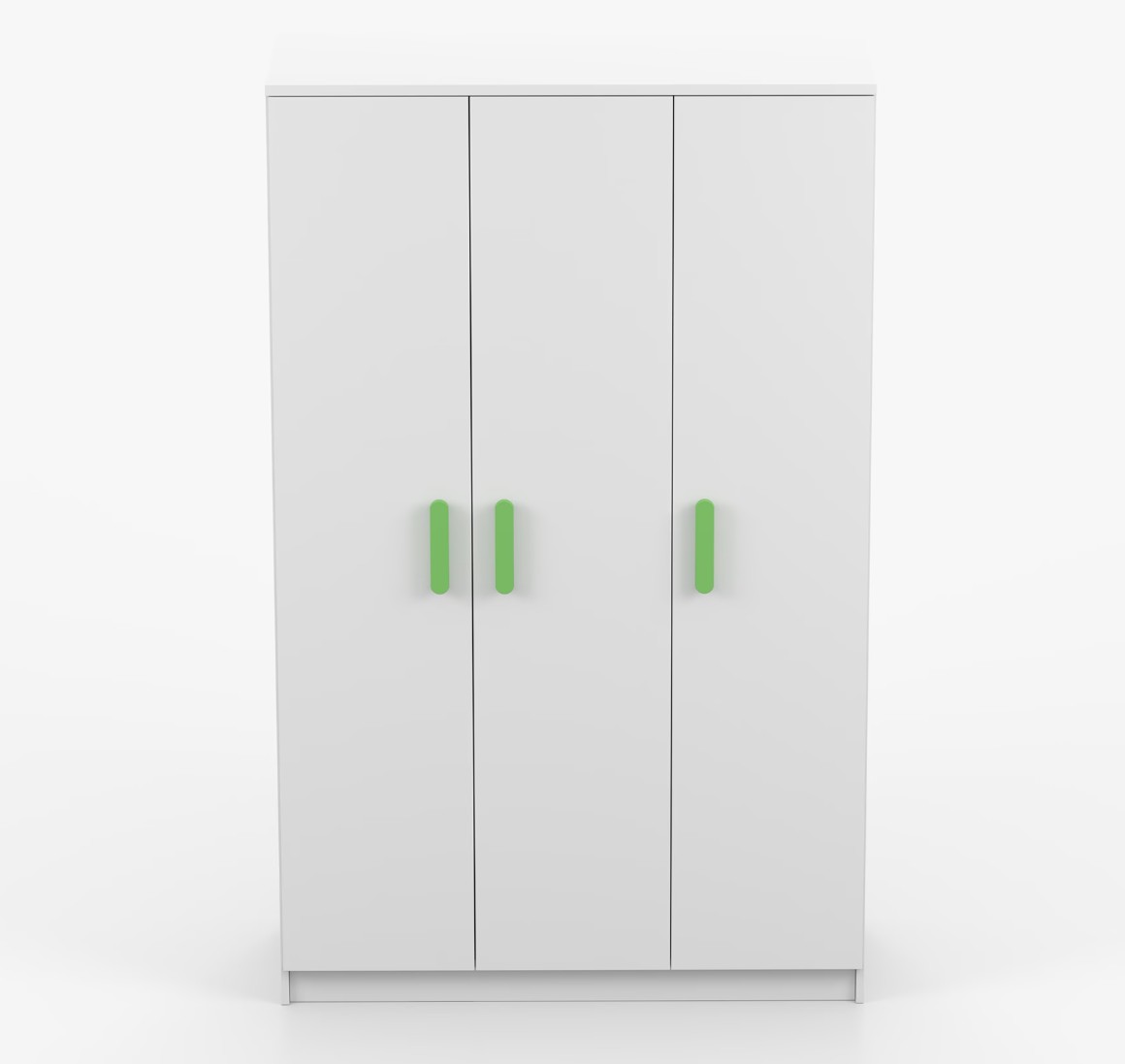 Trojdverová šatníková skriňa SMYK sa vyznačuje praktickým úložným priestorom a veľkou kapacitou. S jednoduchým a moderným dizajnom sa skriňa SMYK hodí do každého typu domácnosti – či už ide o detskú izbu alebo študentov byt. Skriňa je vyrobená z kvalitnej laminovanej dosky s hrúbkou 16 mm s odolnými ABS hranami, ktoré ju chránia pred mechanickým poškodením. Šatníková skriňa poskytuje veľký úložný priestor s dostatočným množstvom políc i miesto na zavesenie oblečenia. Dvere sú opatrené drevenými farebnými úchytkami a otvárajú sa tradičným spôsobom.