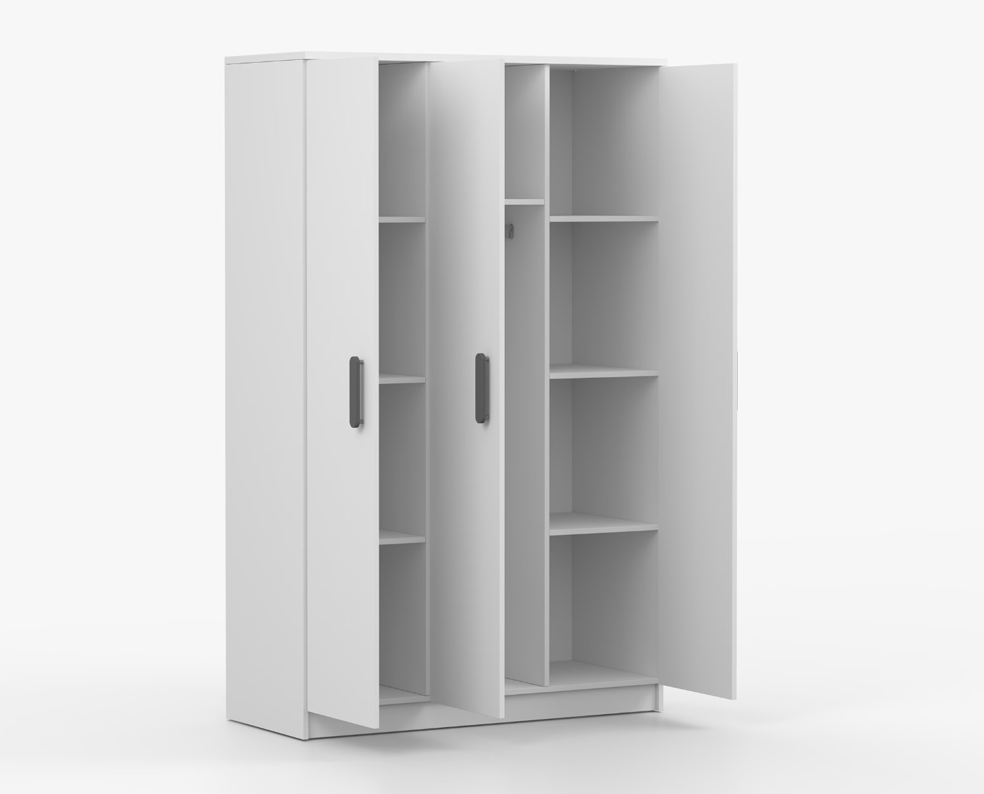 Trojdverová šatníková skriňa SMYK sa vyznačuje praktickým úložným priestorom a veľkou kapacitou. S jednoduchým a moderným dizajnom sa skriňa SMYK hodí do každého typu domácnosti – či už ide o detskú izbu alebo študentov byt. Skriňa je vyrobená z kvalitnej laminovanej dosky s hrúbkou 16 mm s odolnými ABS hranami, ktoré ju chránia pred mechanickým poškodením. Šatníková skriňa poskytuje veľký úložný priestor s dostatočným množstvom políc i miesto na zavesenie oblečenia. Dvere sú opatrené drevenými farebnými úchytkami a otvárajú sa tradičným spôsobom.