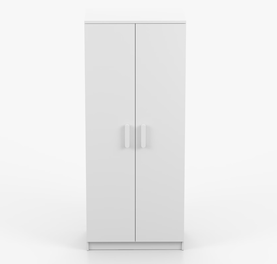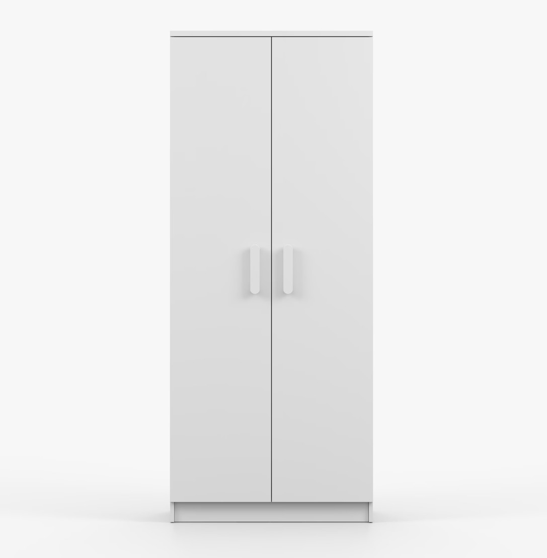 Dvojdverová šatníková skriňa SMYK s jednoduchým a moderným dizajnom sa hodí do každého typu domácnosti - či už ide o detskú izbu alebo študentov byt. Skriňa je vyrobená z kvalitnej laminovanej dosky s hrúbkou 16 mm s odolnými ABS hranami, ktoré ju chránia pred mechanickým poškodením. Šatníková skriňa poskytuje veľký úložný priestor s dostatočným množstvom políc i miesto na zavesenie oblečenia. Dvere sú opatrené drevenými farebnými úchytkami a otvárajú sa tradičným spôsobom.