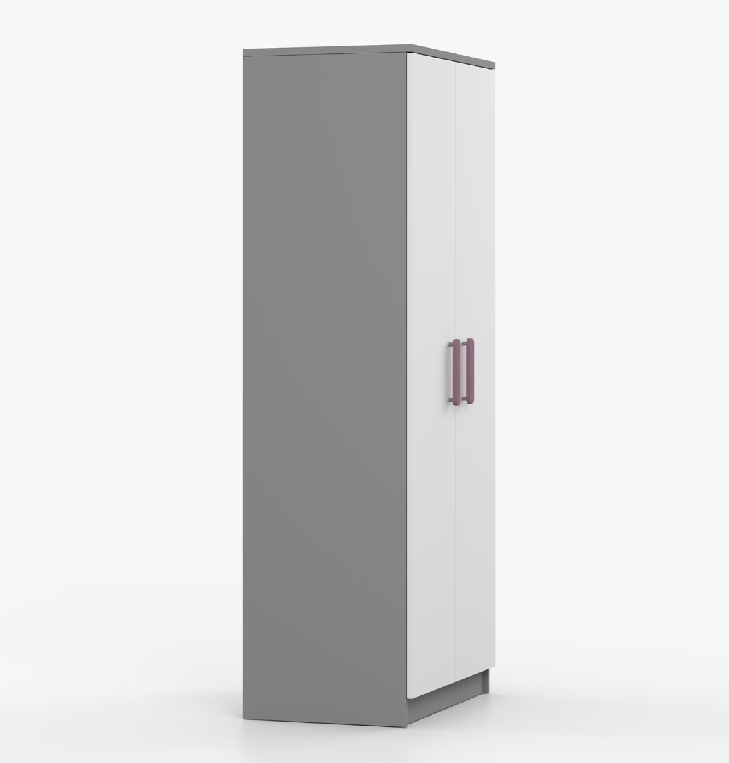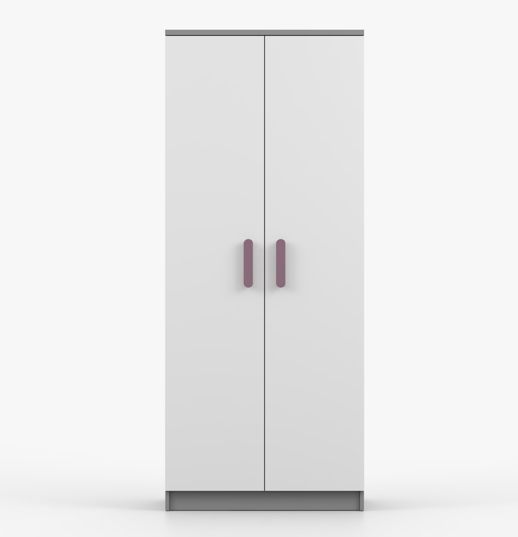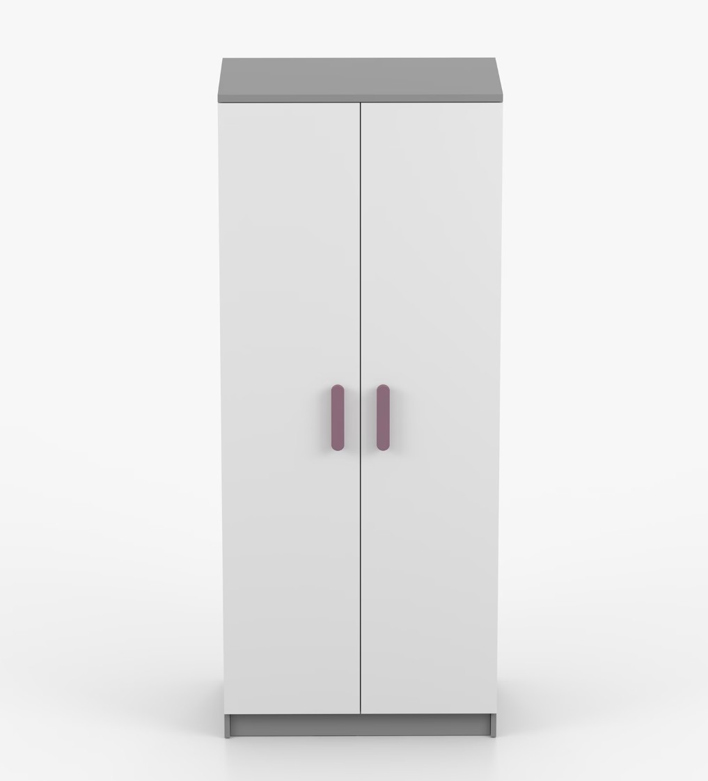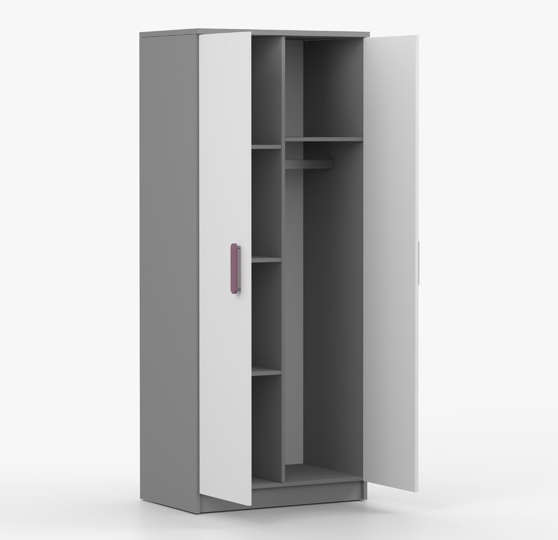 Dvojdverová šatníková skriňa SMYK s jednoduchým a moderným dizajnom sa hodí do každého typu domácnosti - či už ide o detskú izbu alebo študentov byt. Skriňa je vyrobená z kvalitnej laminovanej dosky s hrúbkou 16 mm s odolnými ABS hranami, ktoré ju chránia pred mechanickým poškodením. Šatníková skriňa poskytuje veľký úložný priestor s dostatočným množstvom políc i miesto na zavesenie oblečenia. Dvere sú opatrené drevenými farebnými úchytkami a otvárajú sa tradičným spôsobom.