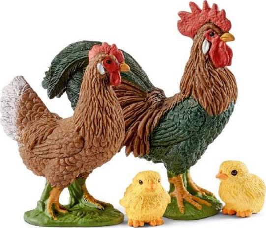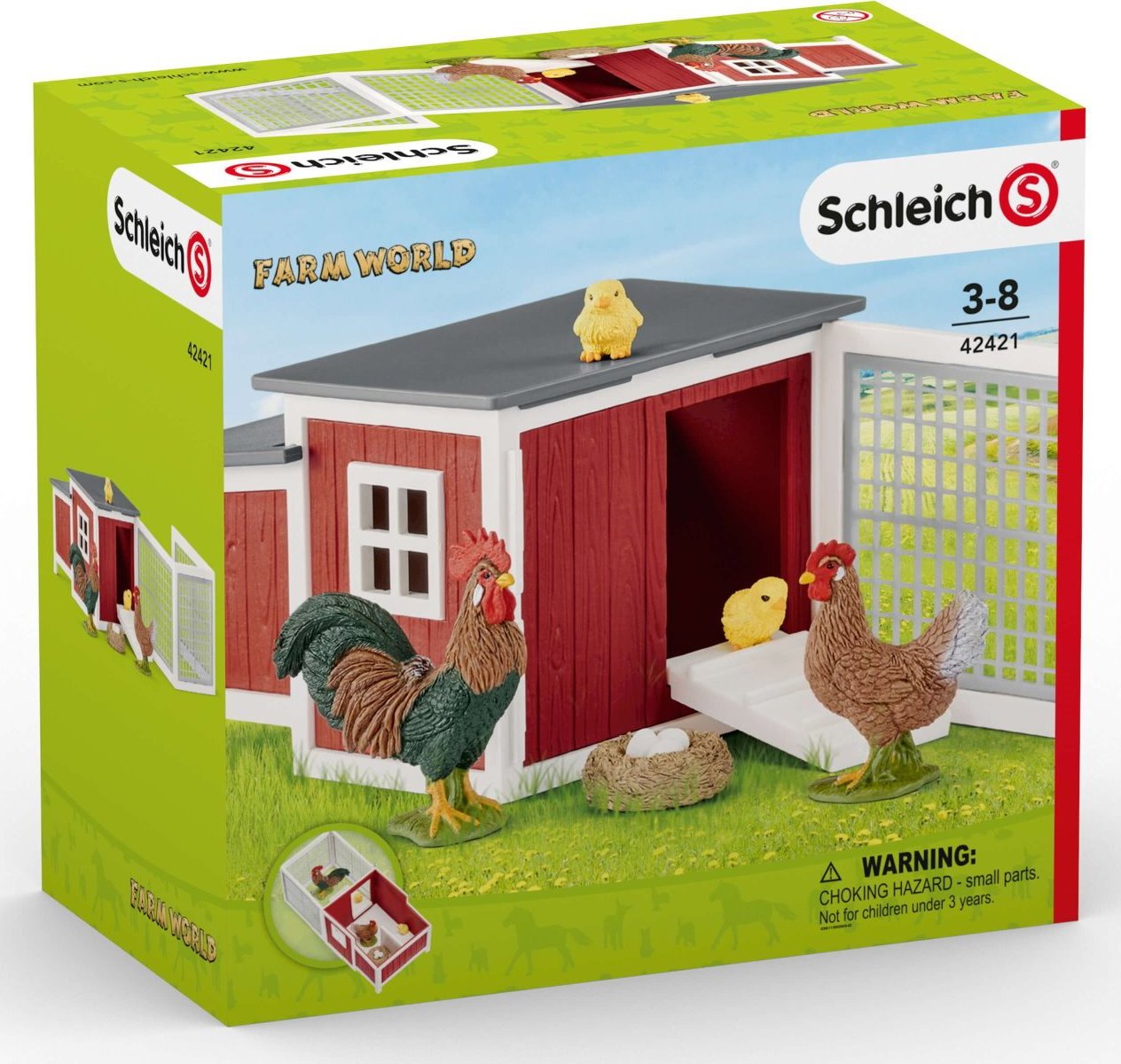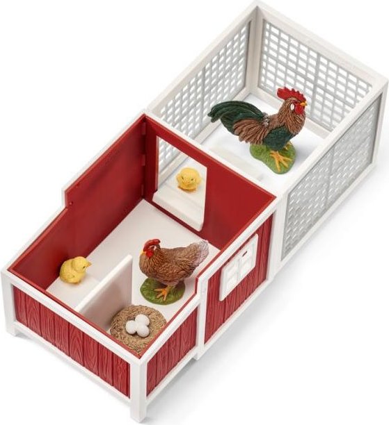 Zábava s domácimi zvieratkami! Figúrky a doplnky z kolekcie Farm World sú prepracované do posledného detailu a priblížia ti život na vidieku. Staň sa farmárom a vyskúšaj si, aké to je starať sa o celý rad hospodárskych zvierat. Balenie obsahuje: kurník s výbehom, figúrku sliepky, kohúta a dvoch kuriatok a doplnky. Presne za ranného úsvitu vyskočí kohút na strechu kurníka a zakokrhá. S prvými slnečnými lúčmi sa objaví aj sliepka. Začnú hrabať a zobať zrno, keď z kurníka zaznie pípanie. Skladacia strecha prezrádza milé tajomstvo: z vajec sa vyliahli kuriatka! Schleich sú realistické a do detailov prepracované figúrky, kde sa dizajnéri sústredili na filozofiu tela, štruktúru svalov a celkový výraz postavičky. Deti sa tak môžu hrať so zvieratkami z celého sveta, pravekými dinosaurami, filmovými a rozprávkovými postavičkami, ktoré sú vernou kópiou svojich predlôh, a kúzelnými elfmi a vílami z magického sveta Bayala. Vhodné pre deti od 3 rokov.Vlastnosti