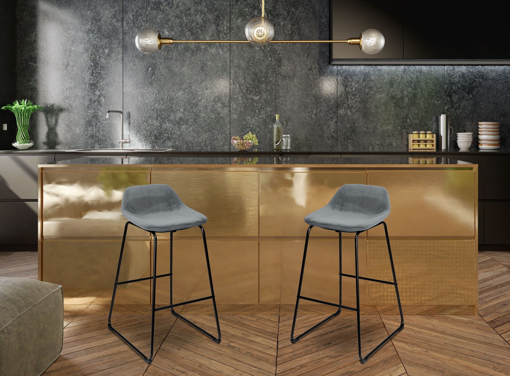 Barová stolička Sligo je ideálna do kuchýň zariadených v štýle loft a glamour, do reštaurácií a pod. Vyznačuje sa stabilnou základnou, širokou podnožkou a veľmi pohodlným sedákom, potiahnutým kvalitným zamatom. 2 kusy v cene.